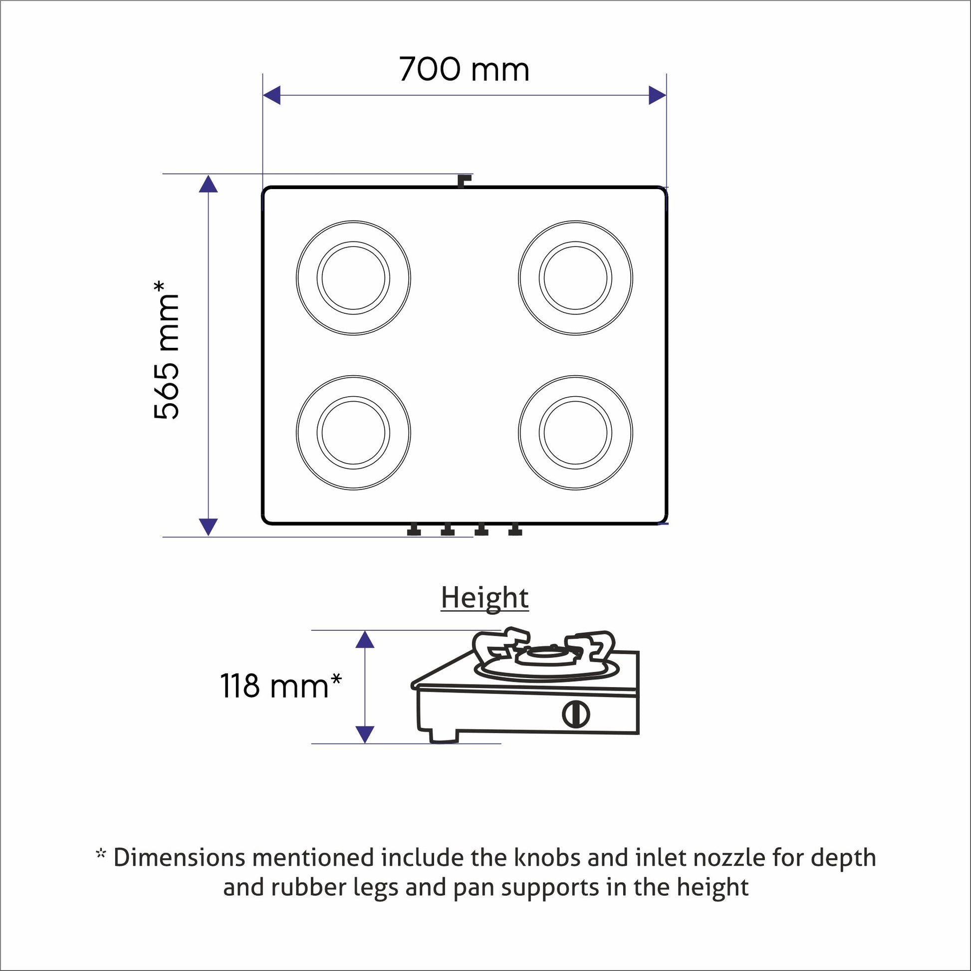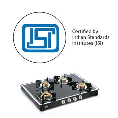 AB manualB operated gas stove equipped with 4 DifferentB forgedB brass burners: 1 High flame, 1 Big and 2 Small Burner for diverse cooking requirements.B