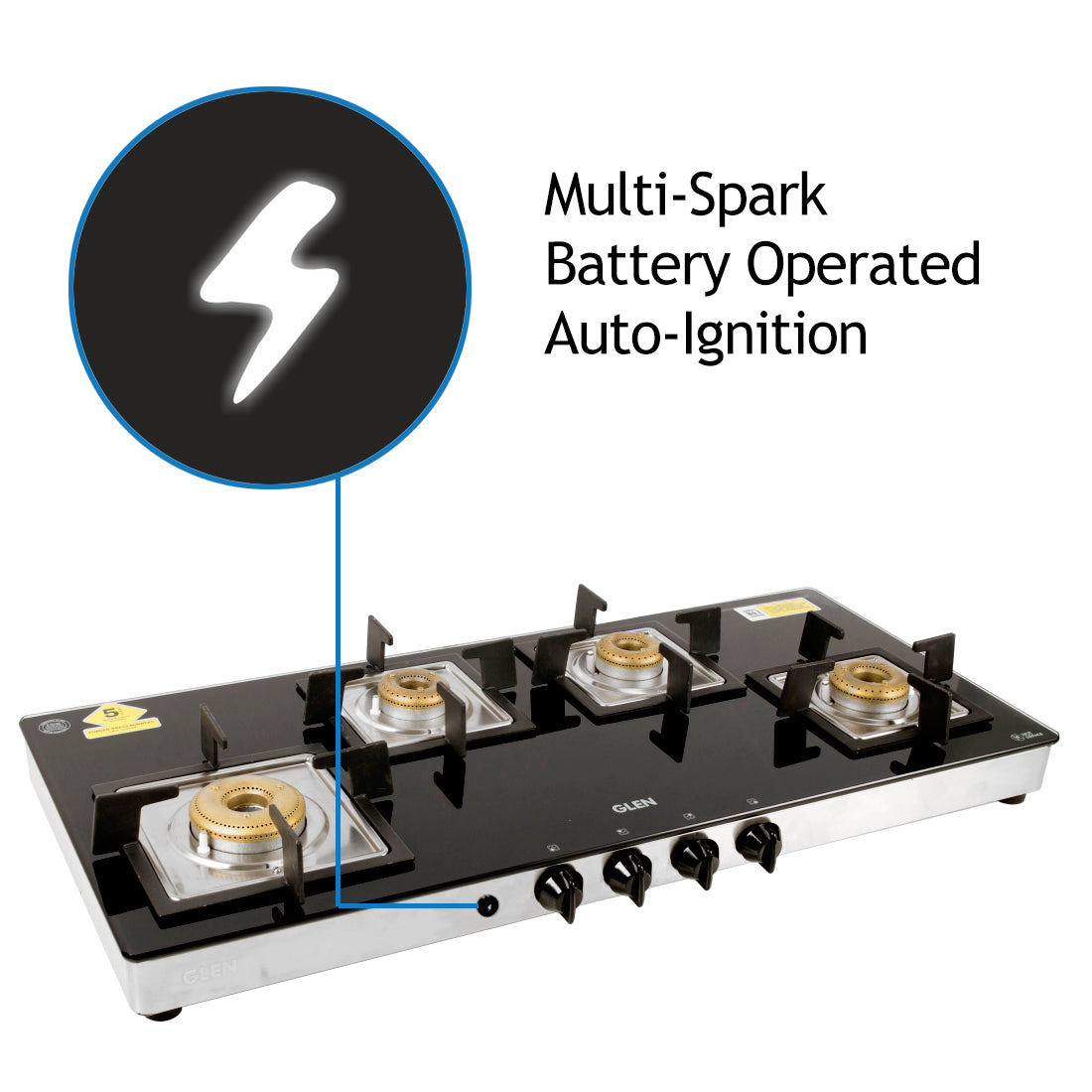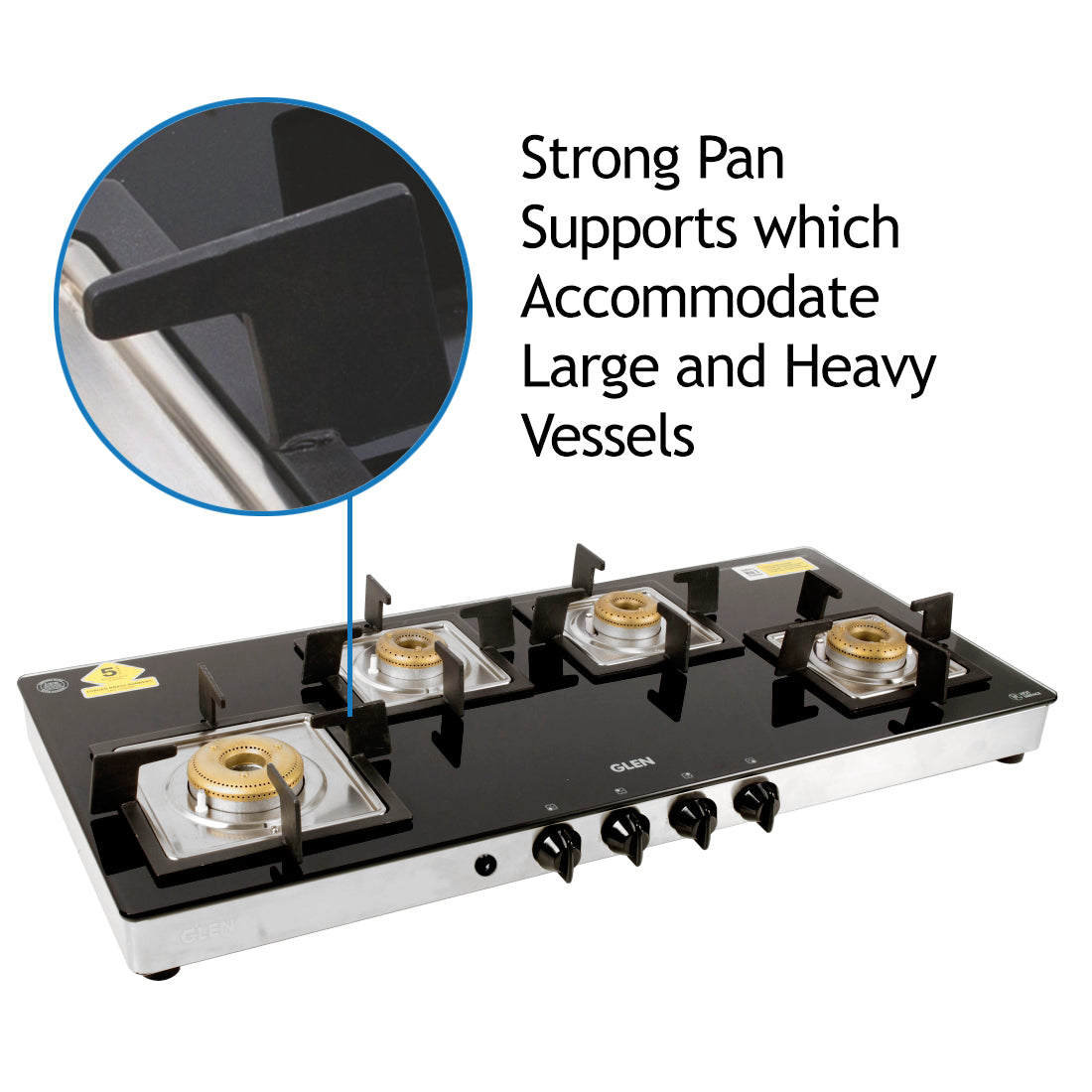 4 Burner Glass Gas Stove Extra Wide 1 High Flame 3 Forged Brass Burner Auto Ignition (1049 SQGT FB AI)