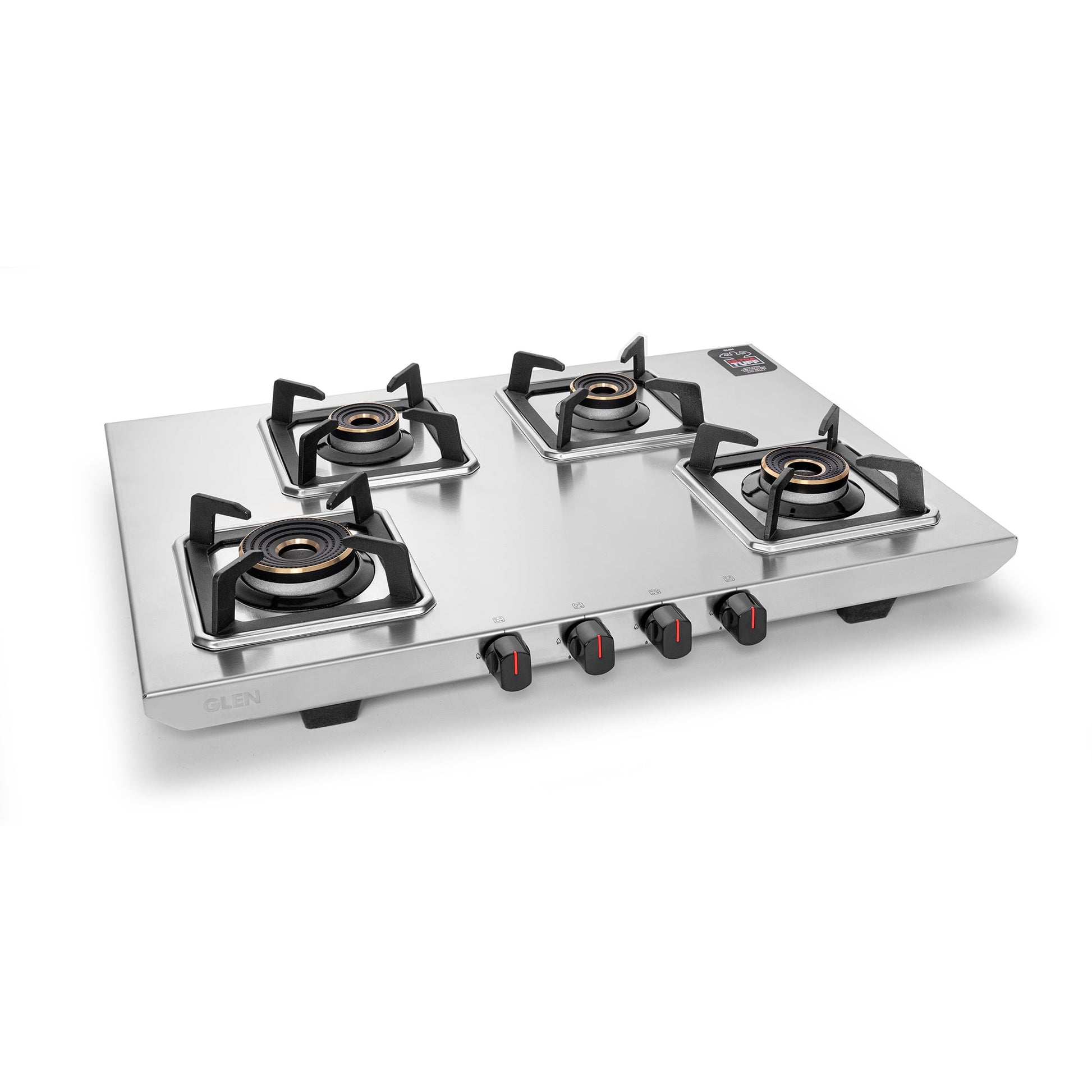 GLEN 4 Burner Ultra Tuff Stainless Steel Gas Stove with Multi Ring Forged Brass Burner & Drip trays (CT1054UTDTSS)