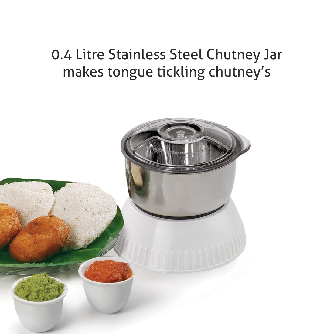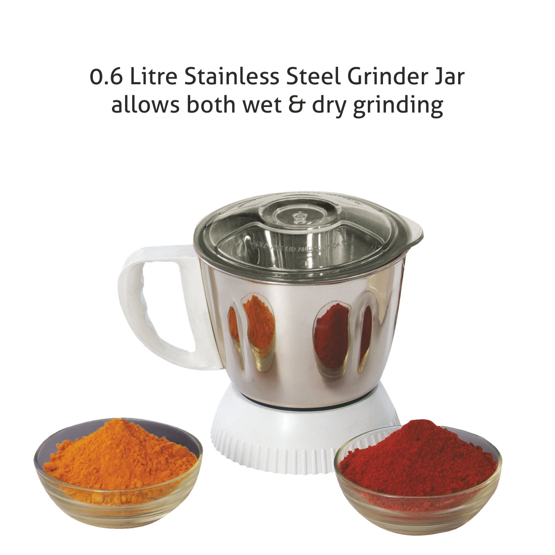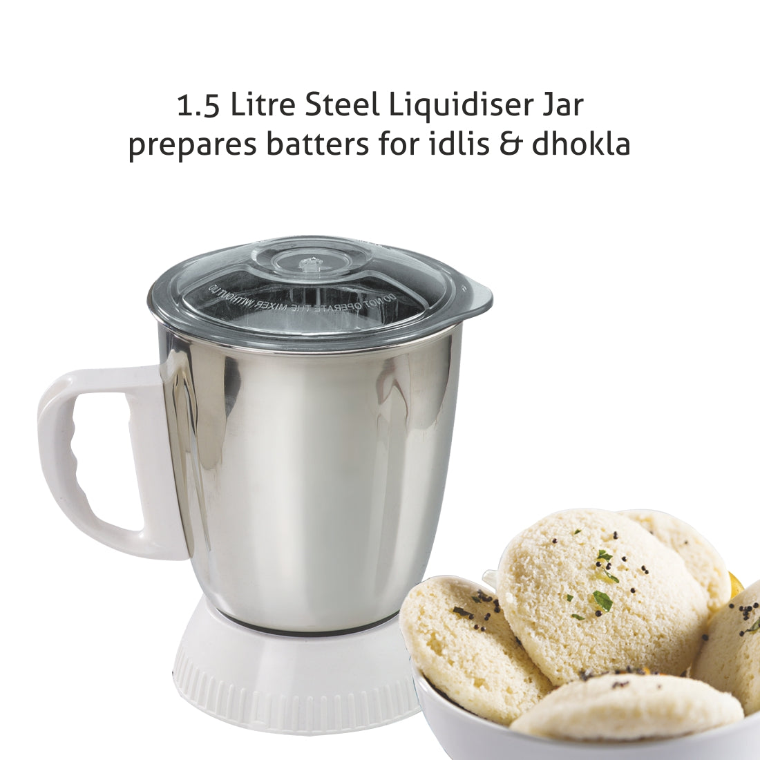 Mixer Grinder 750W with 1 Liquidiser Jar with Fruit Filter 3 Stainless Steel Jars - White (4026 Plus)