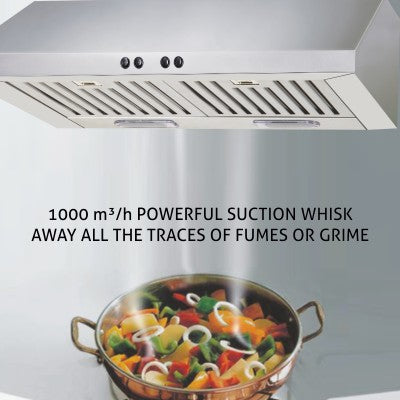 Straight Line Kitchen Chimney with Push Button Baffle filters 60cm 1000 m3/h -Silver (6002 DX SS)