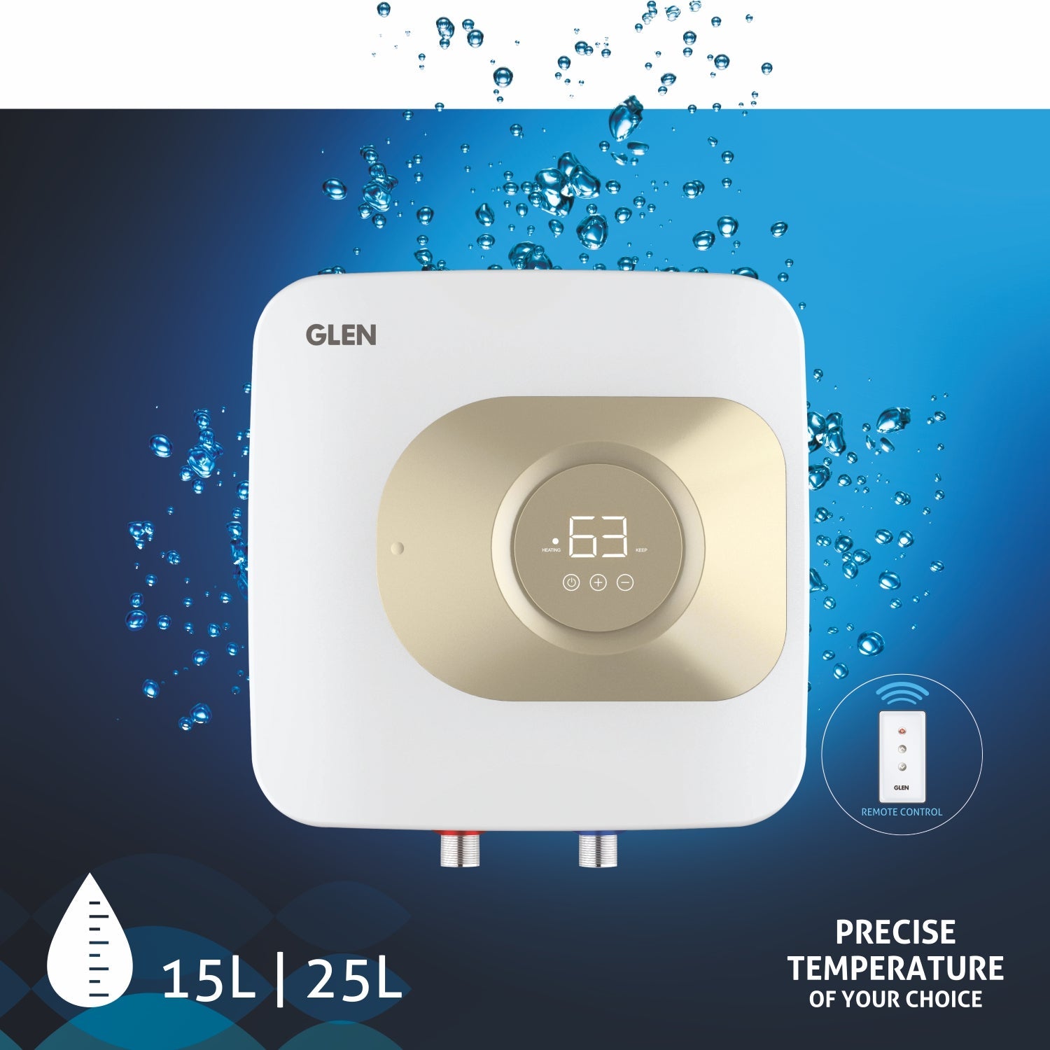Water Heater Digital Controls with Remote, 25 Litre 2000W 8 Bar Pressure Glasslined Tank (7055)