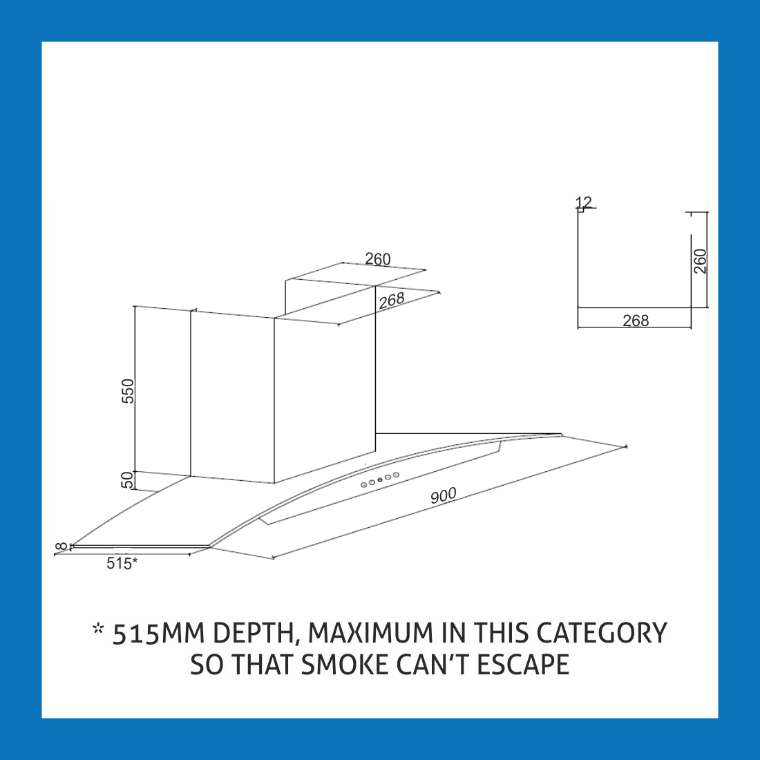 Kitchen Chimney Curved Glass Push Buttons Baffle filter 90cm 1000 m3/h -Silver (6071 SS)
