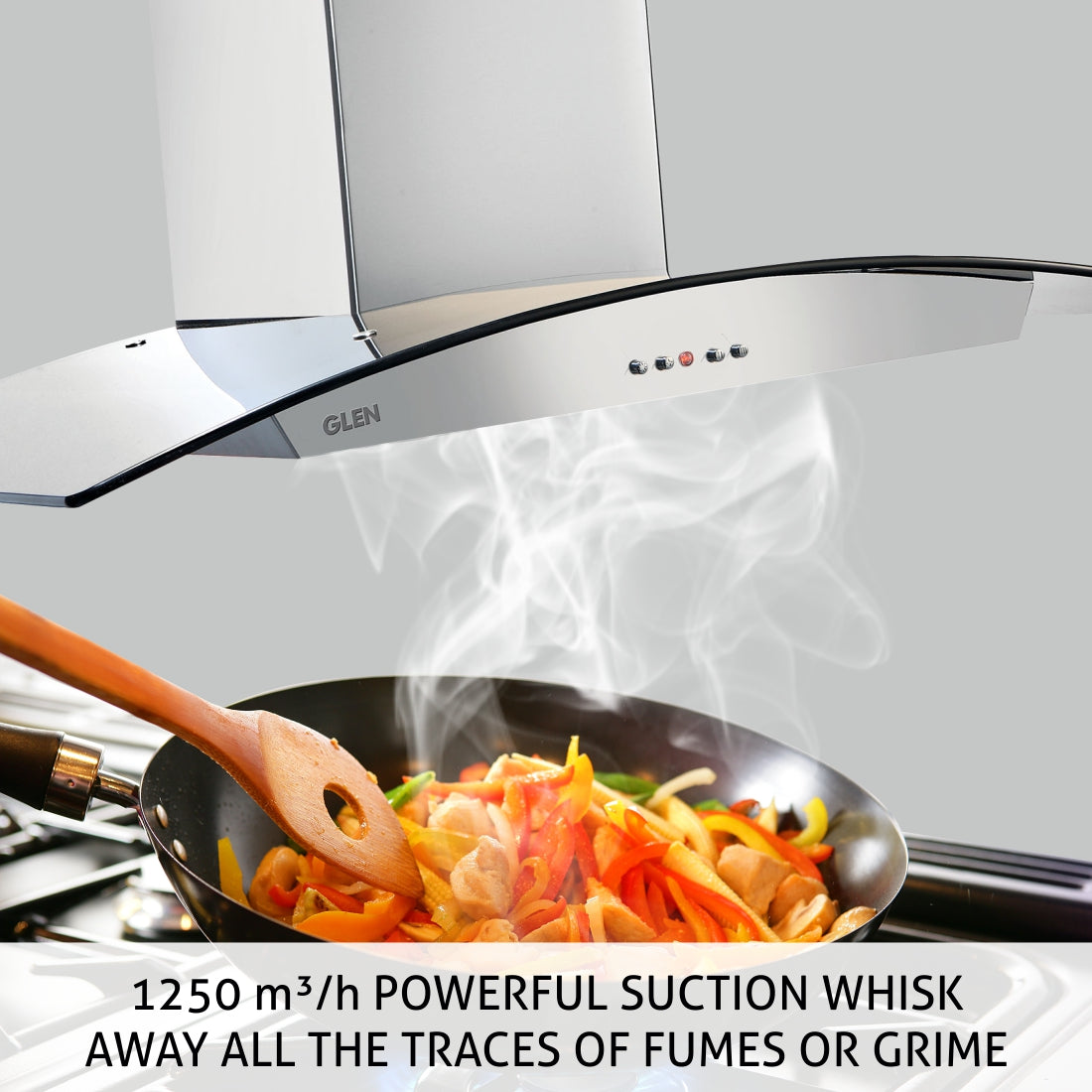 Kitchen Chimney Curved Glass, Push Buttons Baffle filter 90cm 1250 m3/h -Silver (6071 DX)