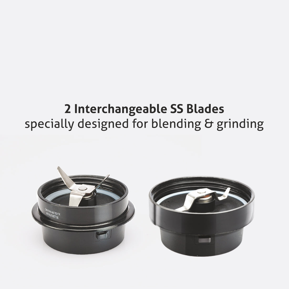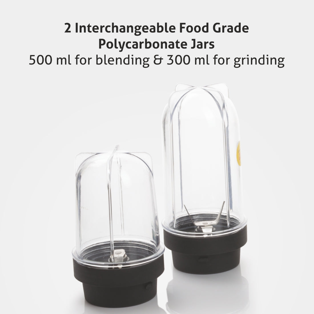 The Glen 4048 Active Blender is slim, compact and multi-purpose and can be carried with one hand anywhere around the house for quick and instant action blending. The Blending vessel itself can act as a health drink bottle after blending and you do not need to transfer the blended item. This is best suited for making health drinks and protein shakes. The 350W super-fast motor blends & grinds in seconds. It comes with two Unbreakable food grade jars and two blades along with a stainless steel chutney jar for making chutney, and the other for making smoothies, blends, mixes in a jiffy. Motor unit is very steady and safe to use.