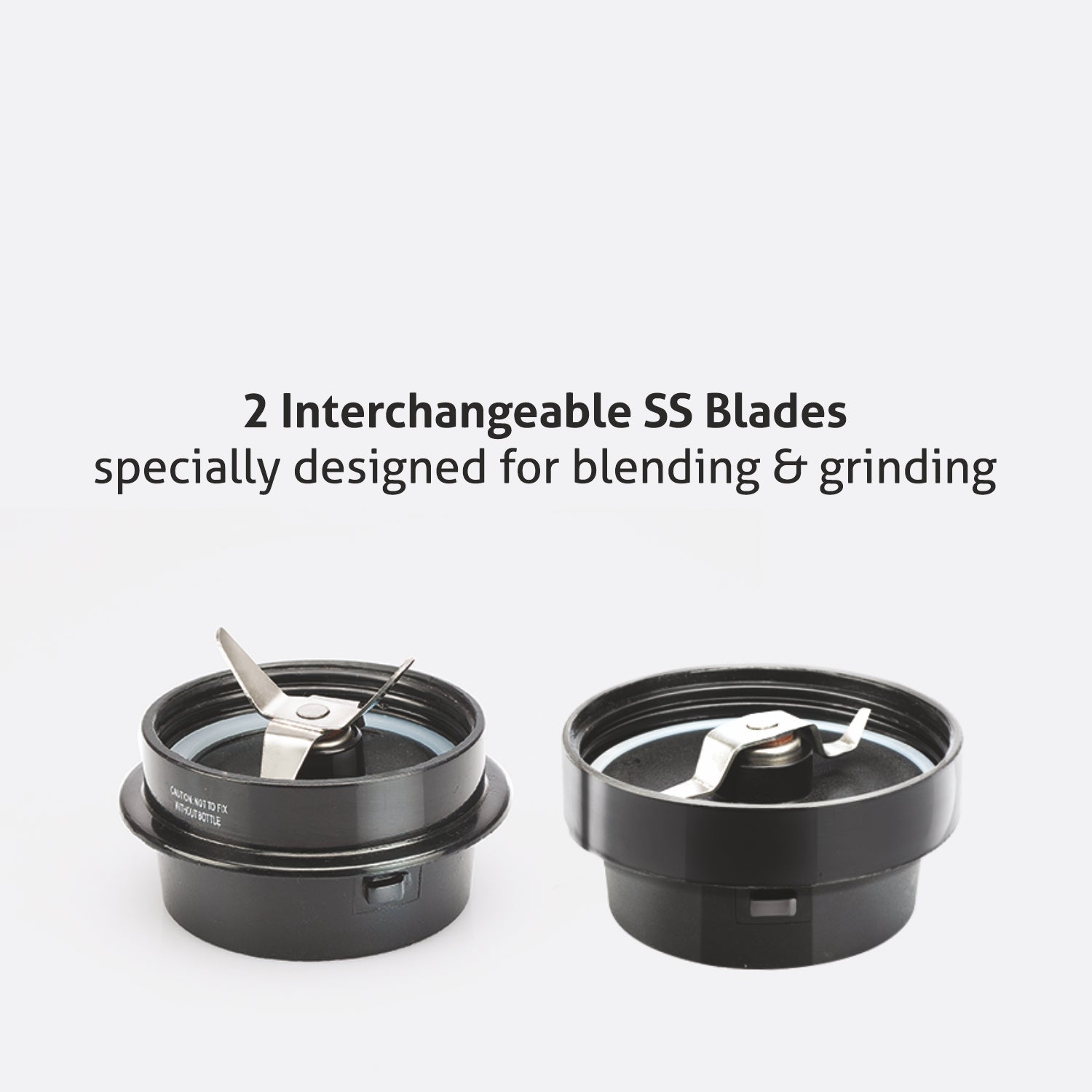 The Glen 4048 Active Blender Grinder is slim, compact and multi-purpose and can be carried with one hand anywhere around the house for quick and instant action blending. The Blending vessel itself can act as a health drink bottle after blending and you do not need to transfer the blended item. This is best suited for making health drinks and protein shakes. The 350W super-fast motor blends & grinds in seconds. It comes with two Unbreakable food grade jars and two blades along with a stainless steel chutney jar for making chutney, and the other for making smoothies, blends, mixes in a jiffy. Motor unit is very steady and safe to use.