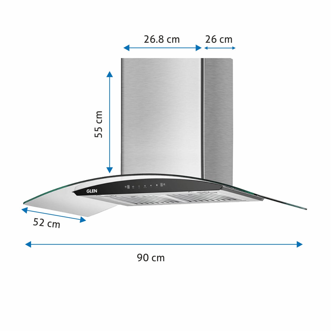 The Glen 6063 Auto Clean Kitchen Chimney is a modern design hood with Curved Toughened glass to give that elegant and modern look to your kitchen. It comes with Stainless Steel baffle filter which is easy to clean and last a life time. The 230w Powerful 100% copper winding motor ensures that you get a powerful suction.