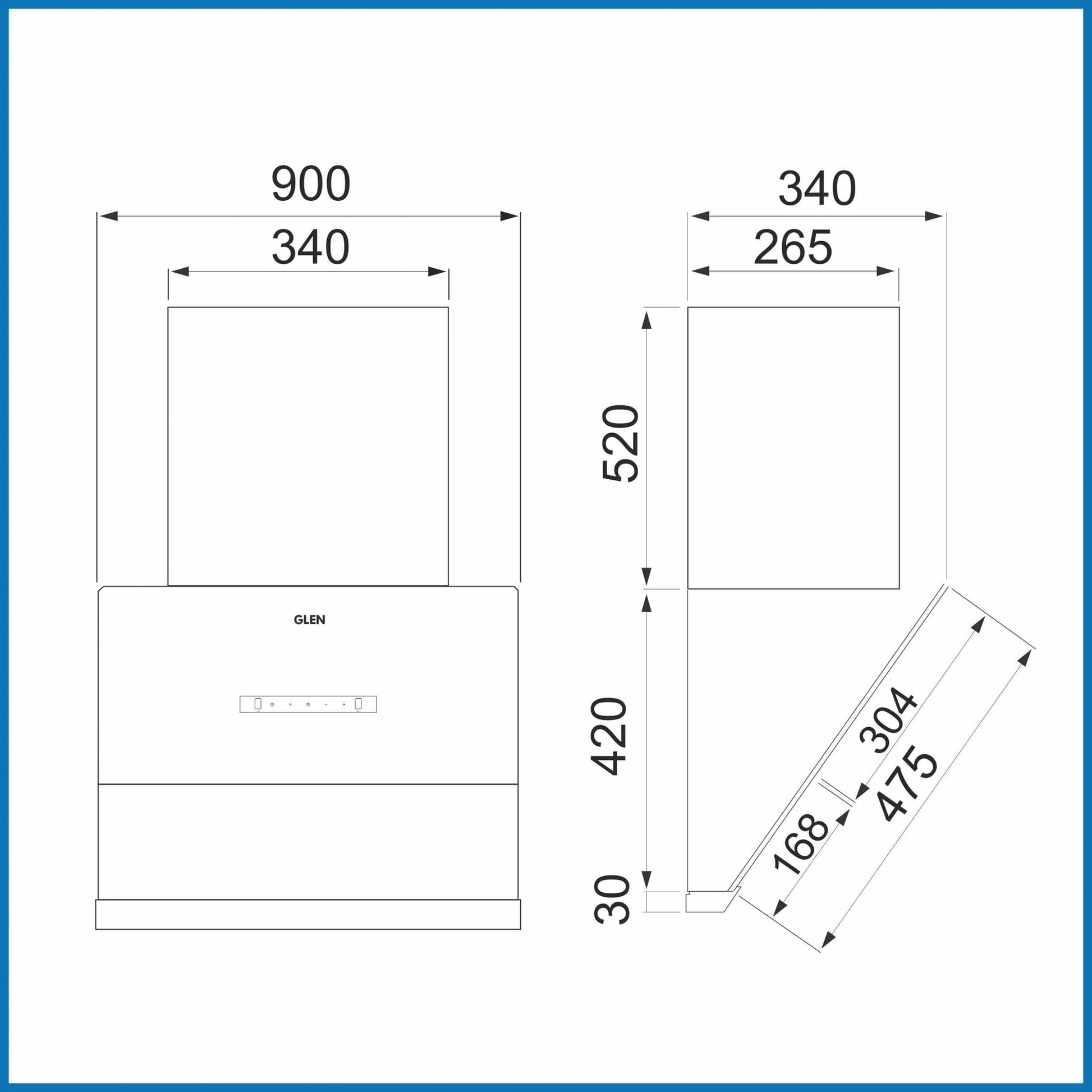 - Design: This Glass chimney in black finish is designed to blend with your kitchen interiors seamlessly. It is elegant & becomes a point of attraction in your kitchen.