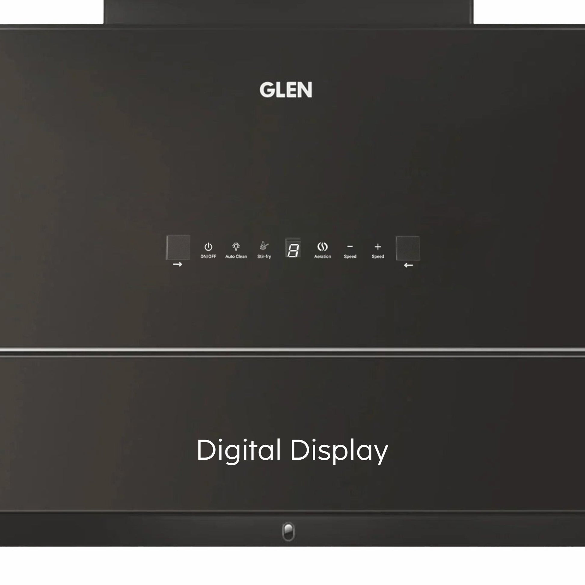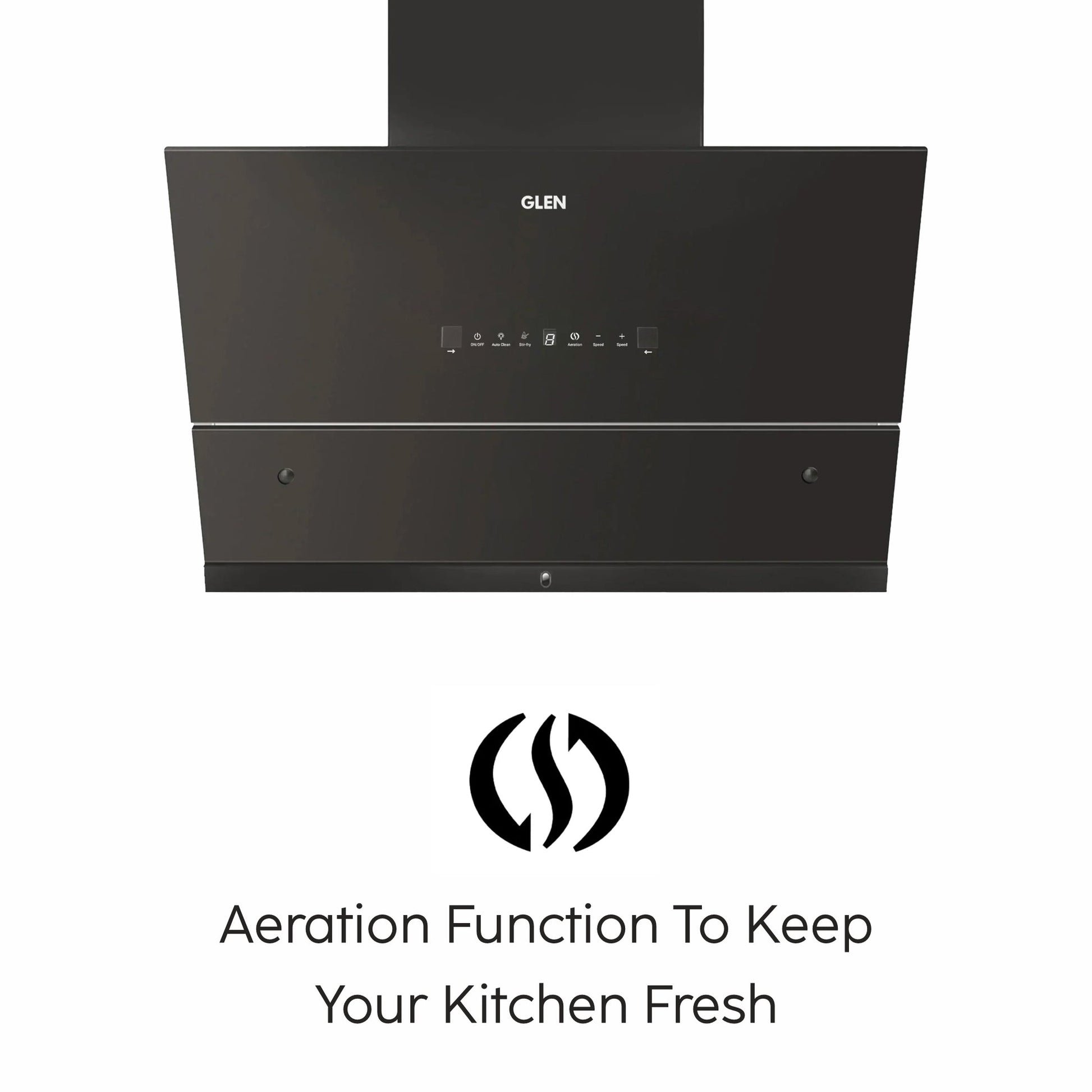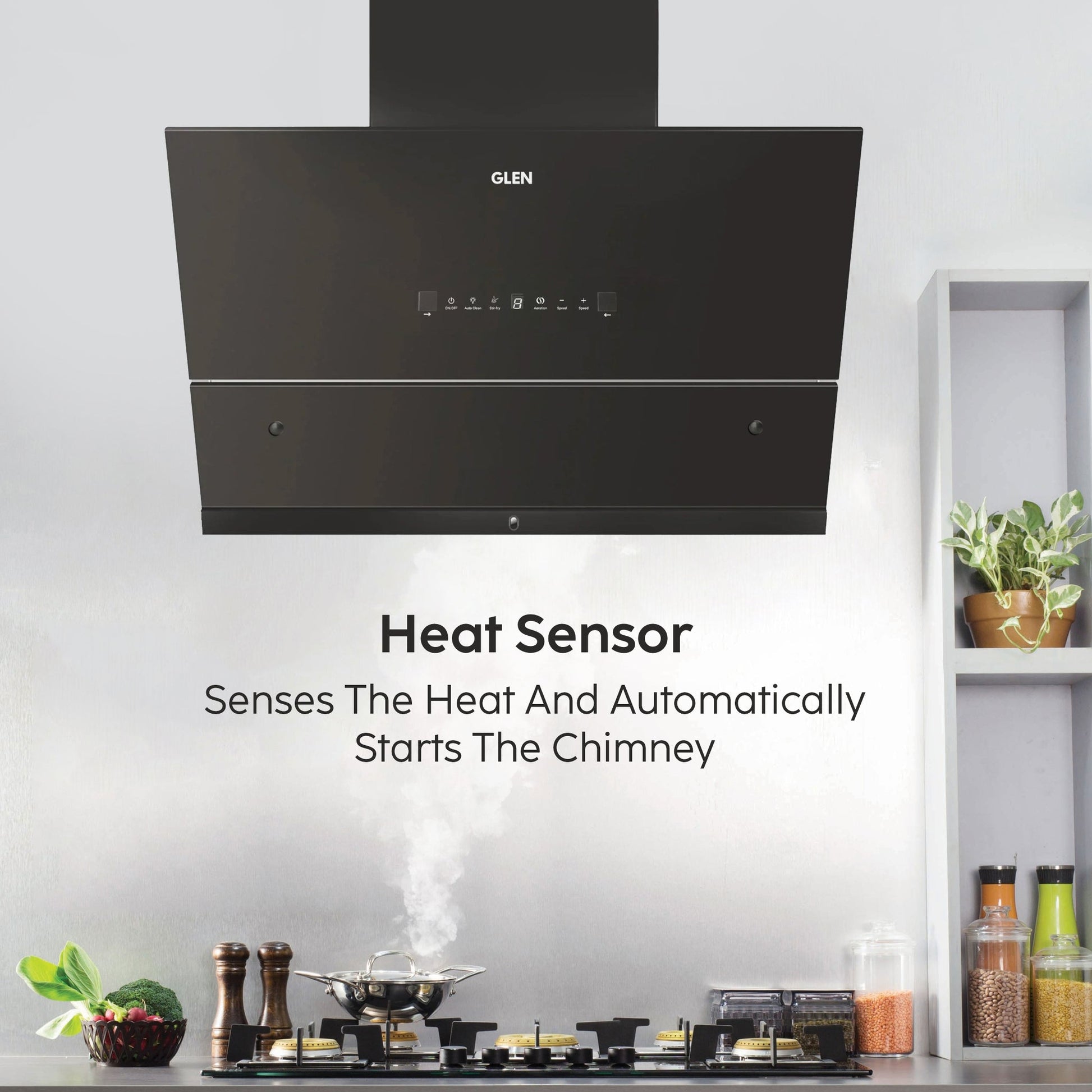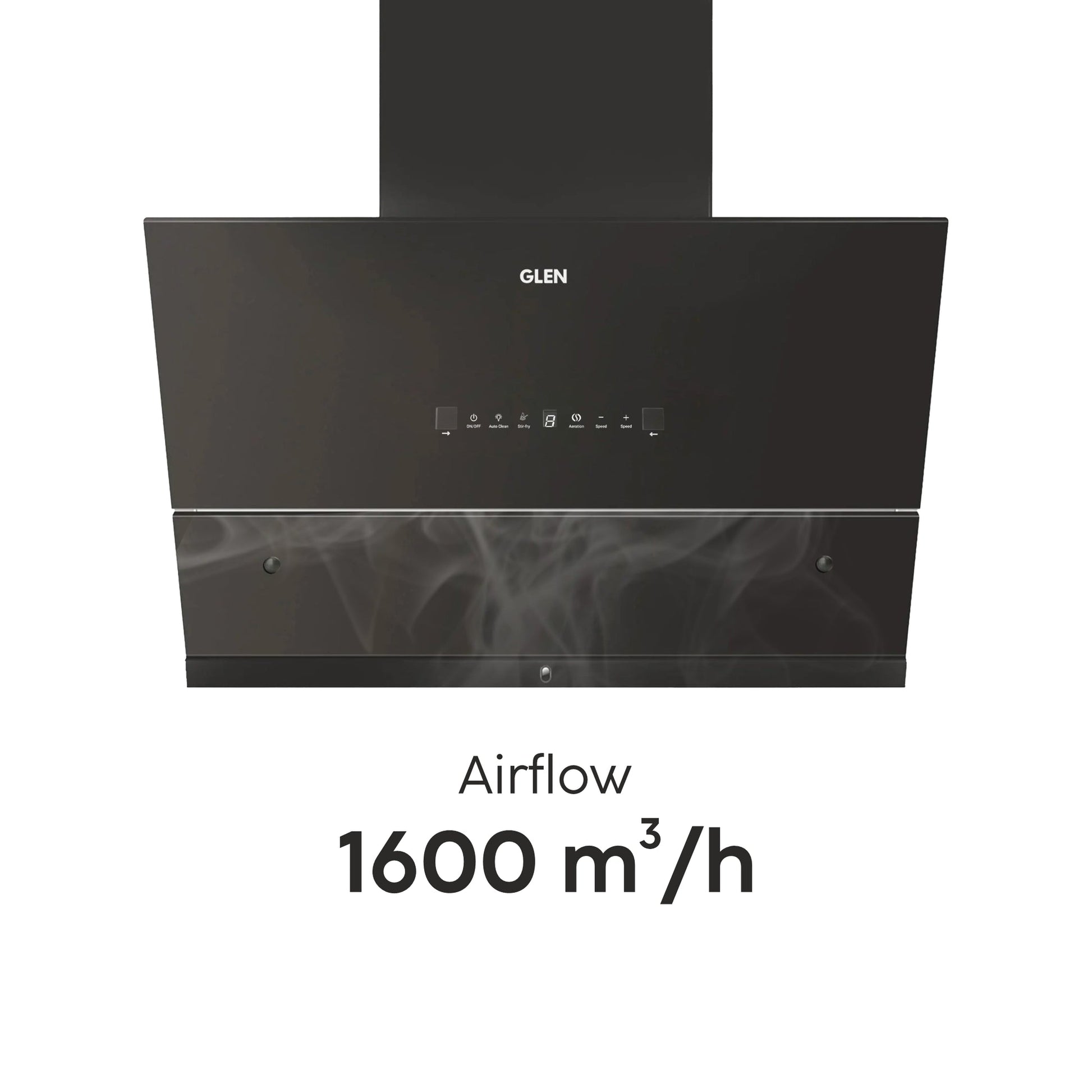 GLEN Auto Clean Glass Chimney Filter-less with Heat Sensor, BLDC Motor 1600 m³/h - 60/75/90cm (CH 6065 HSR BLDC BL AC)