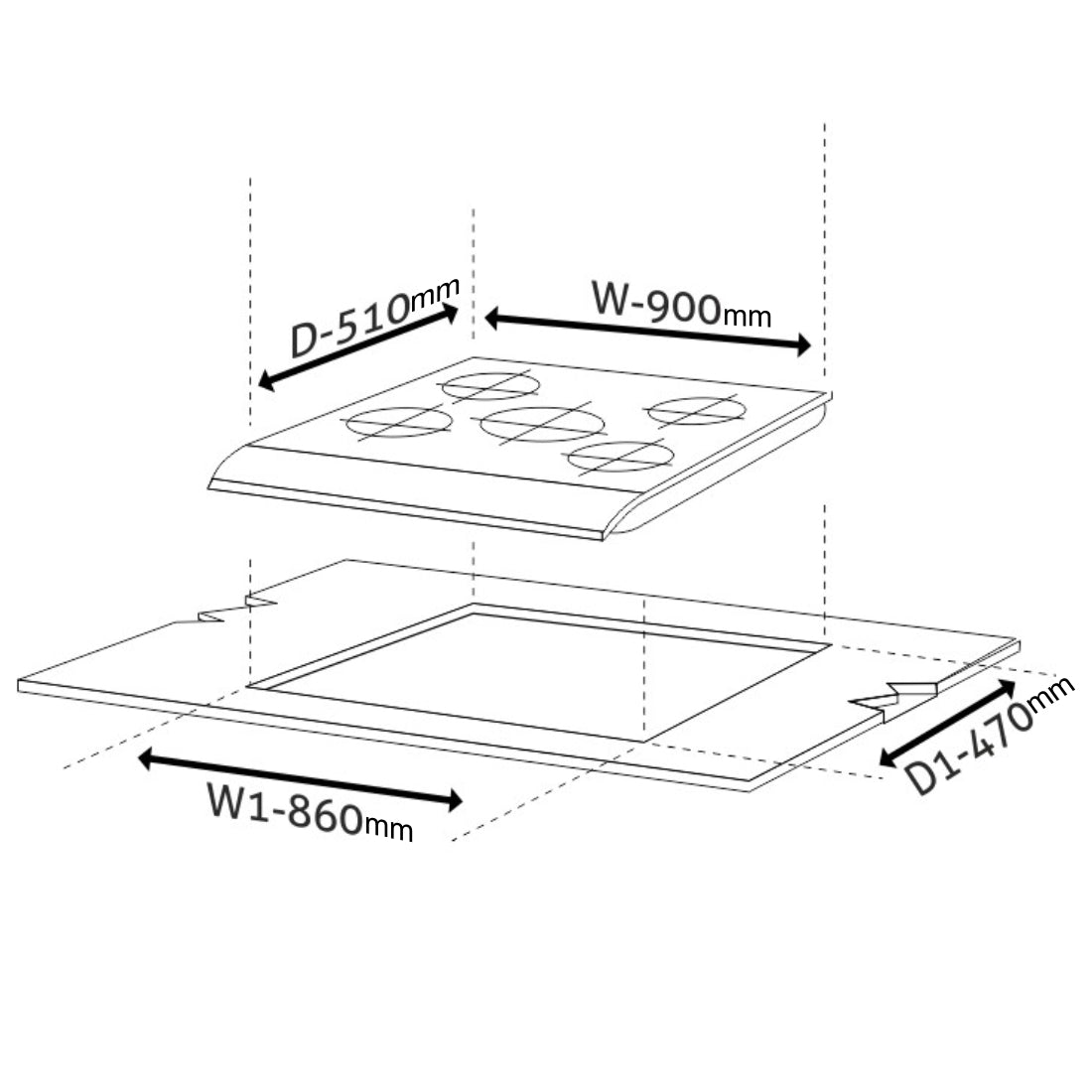 5 Burner Built-in Glass Gas Hob Triple Ring Burner Double Ring Forged Brass Burner Auto Ignition (1095 SQDBTR)