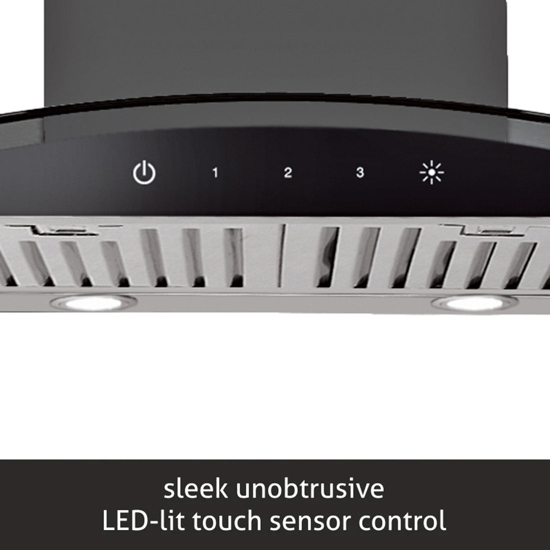 •Design: Toughened glass in a black body. Unique value-engineered design to stand out and add value to your kitchen. The strength of toughened glass and the graceful curved design lend a bright look and add a touch of class that’s hard to beat.