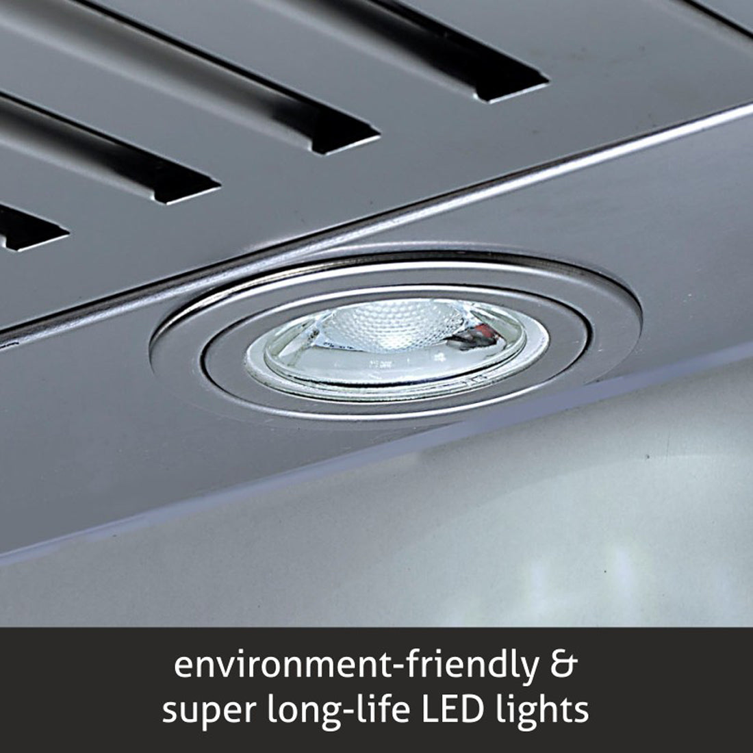 The Glen 6071 Designer Chimney is a gracefully designed hood having curved design with strength of toughened glass. It comes with 2 stainless steel baffle filters which are easy to clean and lasts a lifetime.