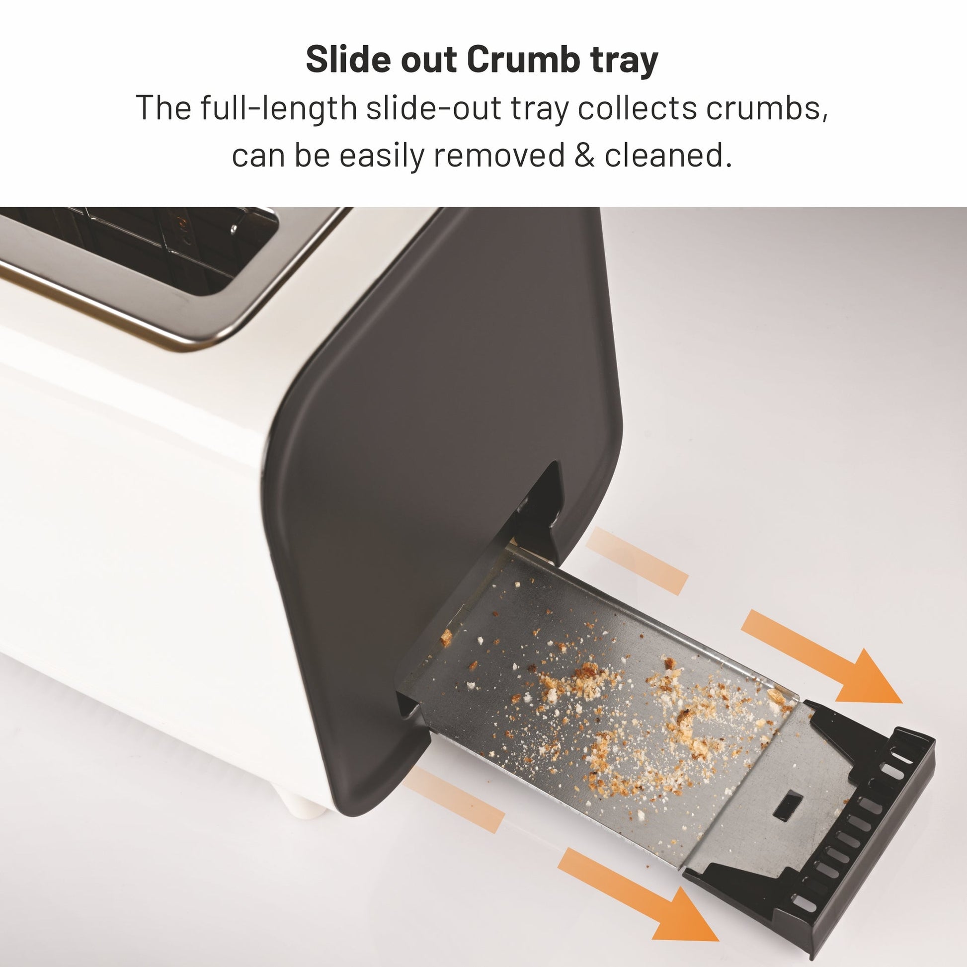 GLEN Electric Auto Pop-up 2 Slice Toaster, 750W, 6 Level Browning Control, Removable Crumb Tray - White SA3014