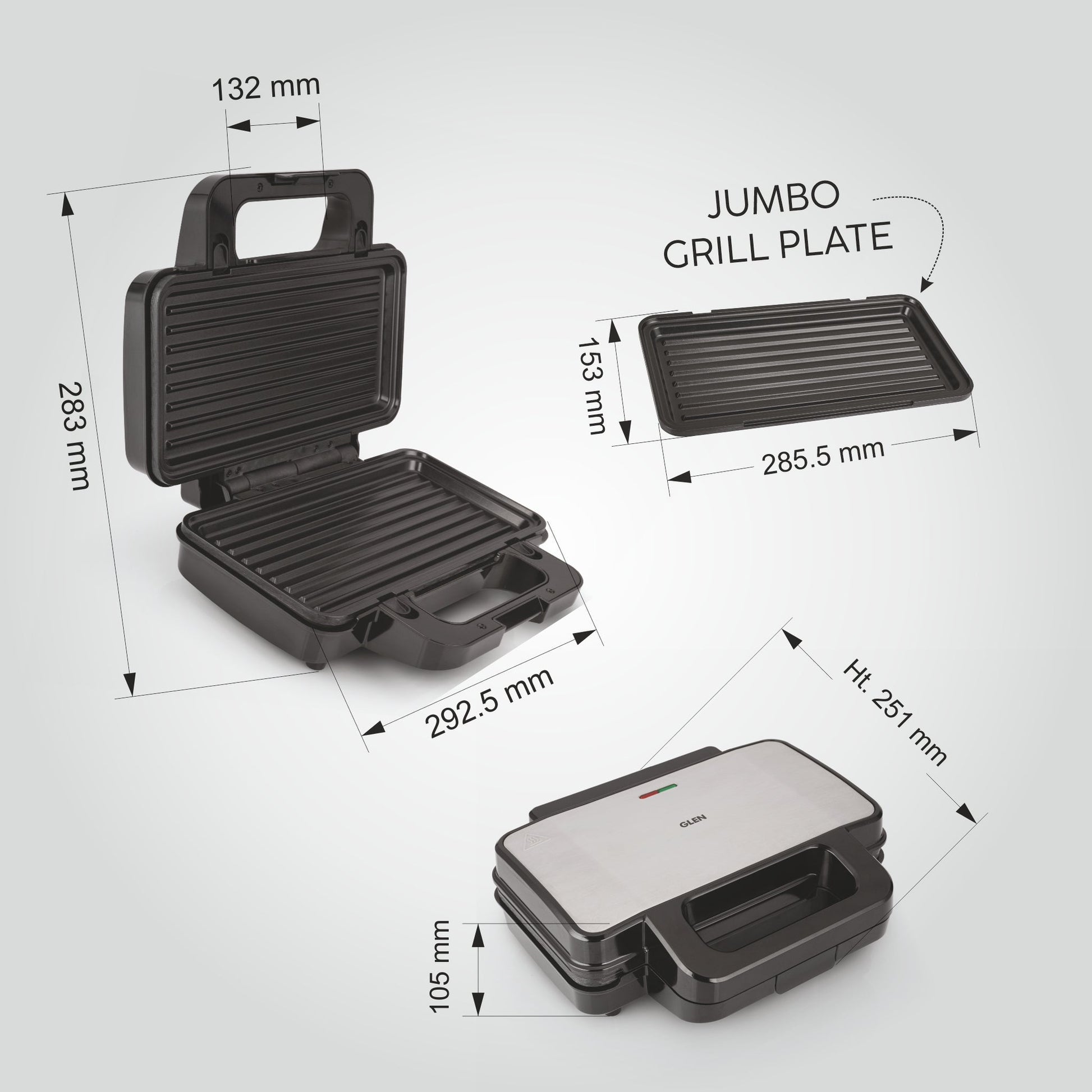 GLEN Electric Jumbo Sandwich Maker Grill with Non-Stick Coating Plates, 1000W - (SA3025JGRILL)