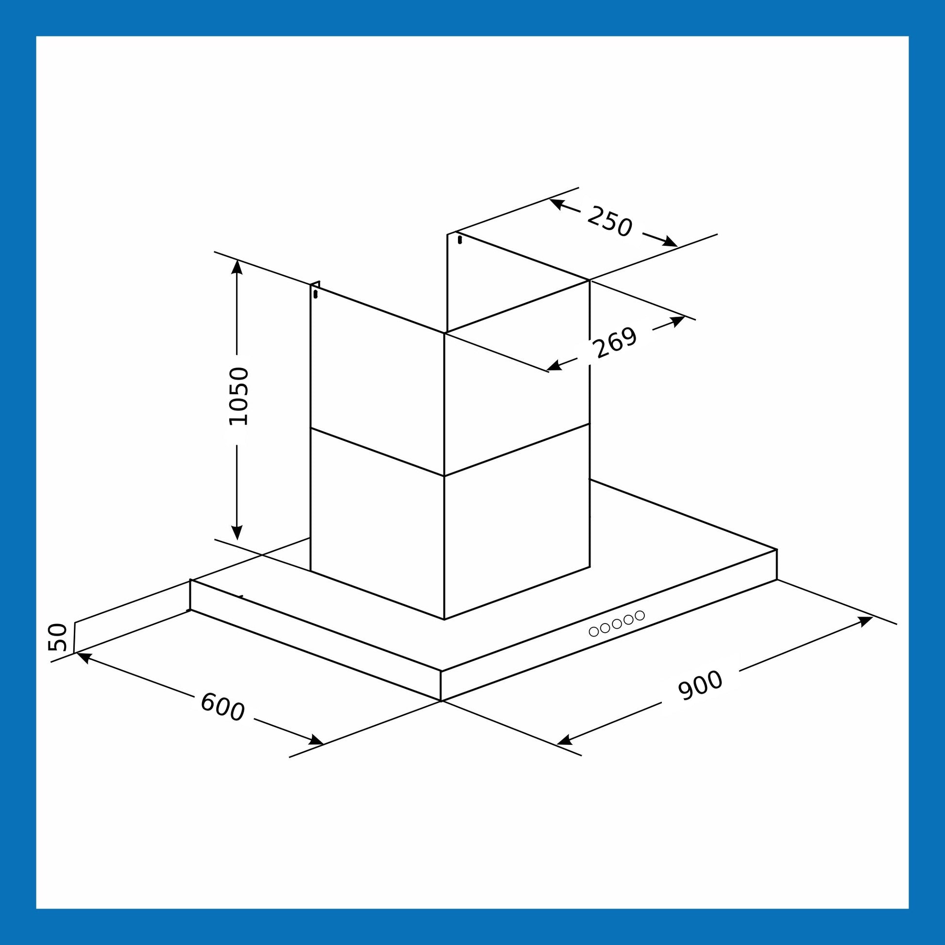 Island Kitchen Chimney Push Buttons Italian Motor Baffle filters 90cm 1250 m3/h -Silver (6052 IS)