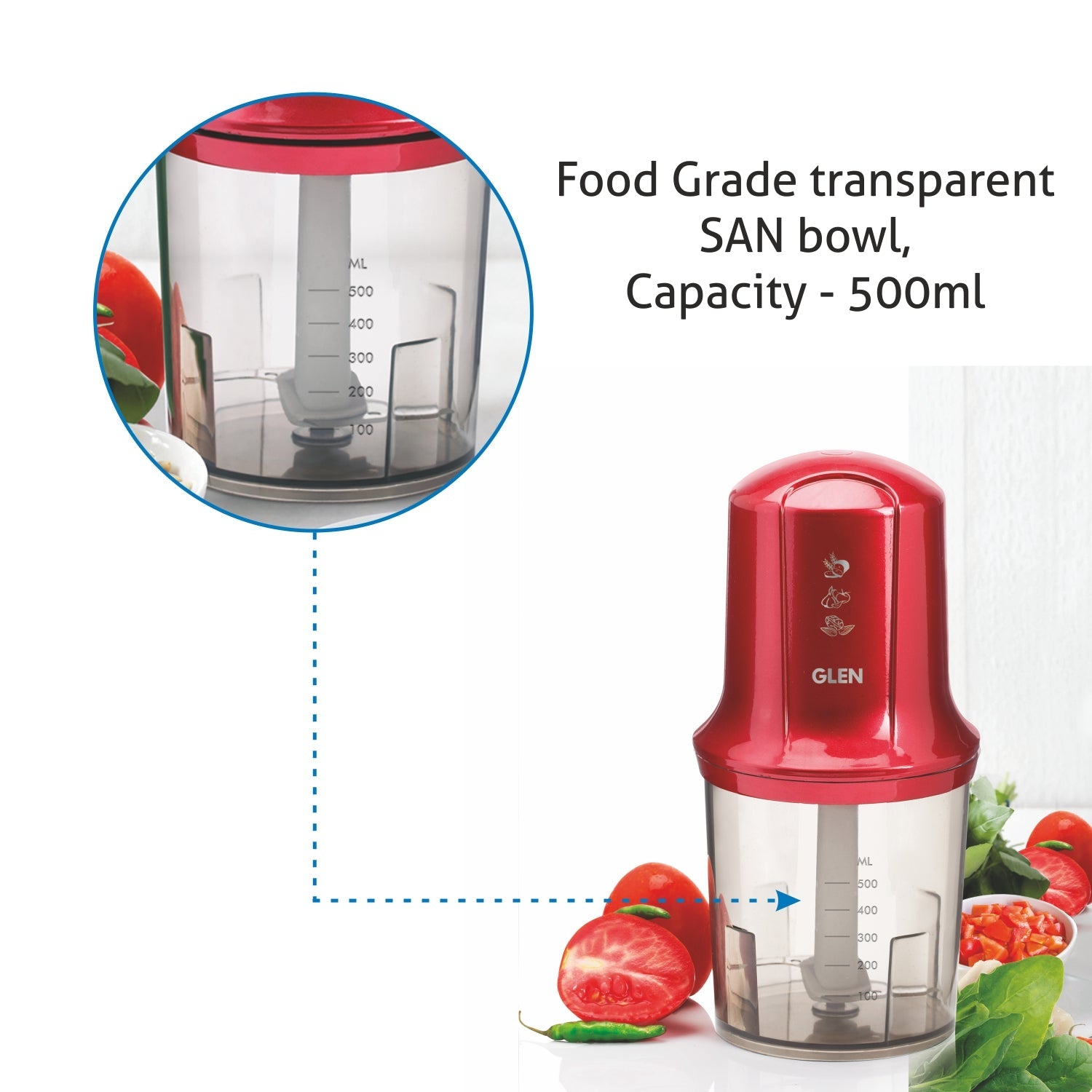 TheB Glen 4040 mini chopperB is the most helpful kitchen appliance which reduces your pre-cooking efforts. It comes with food grade transparent SAN bowl and rust resistant stainless blades for better functioning and longer life. It allows chopping onions, tomatoes, leafy vegetables, nuts and other foods in a jiffy. Also, the whisking disc attachment lets you prepare fluffy omelets. It features 200 W motor and easy push start operation for hassle free chopping.