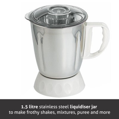 Mixer Grinder 750W 100% Copper Motor, 3 Stainless Steel Liquidiser, Grinder and Chutney Jars - White (4022)