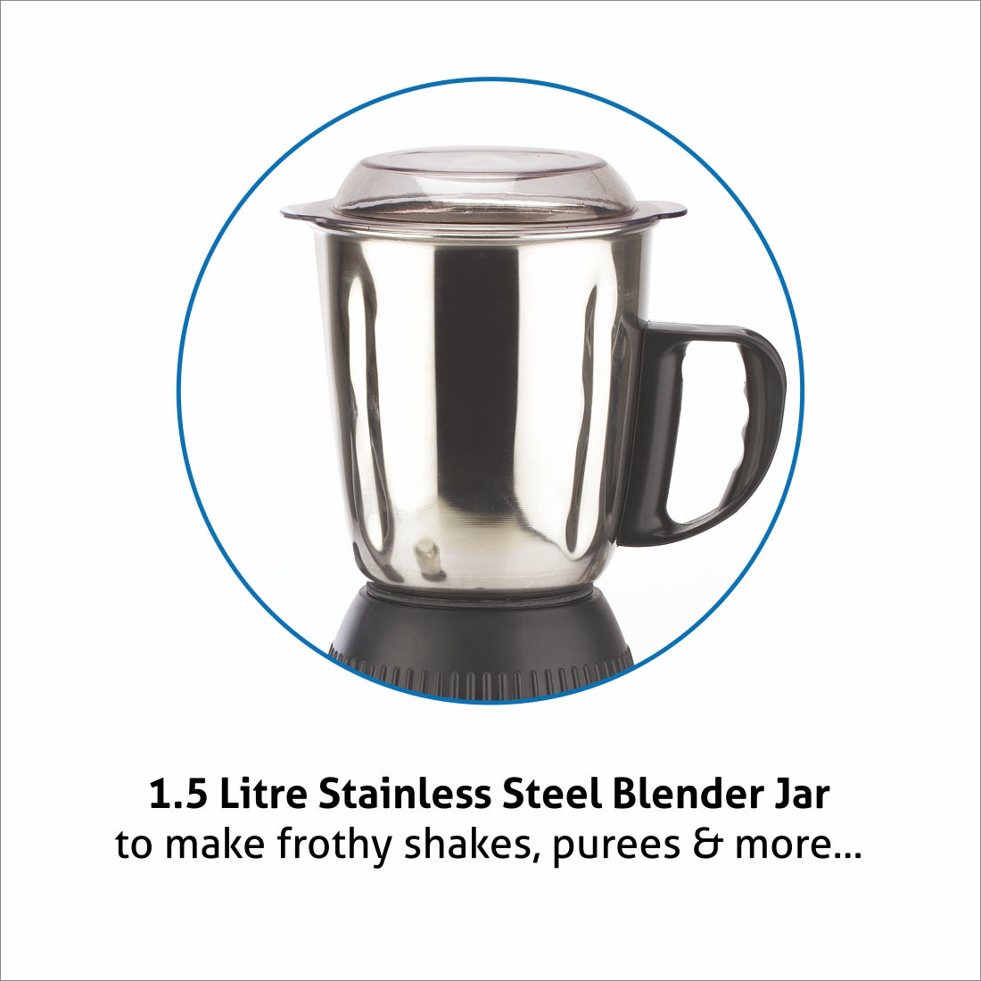 Mixer Grinder 750W 100% Copper Motor, 1 Transparent Jar, 3 Stainless Steel Jars, - Silver (4022 PLAT PLUS)