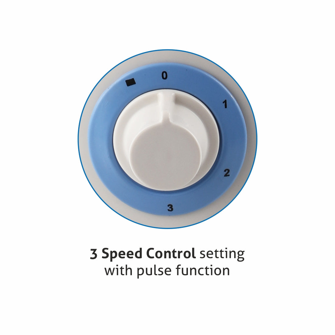 The Glen 4023 Mixer Grinder is sturdy enough to make all your pre cooking requirements simple. From grinding dry spices to soaked rice & dals for making batters and pastes, you can also prepare smoothies and shakes. The 3 different jars including liquidizer, grinder and chutney minimizes your efforts and also save your time. The 750 W heavy duty motor handles heaviest loads. The special oil seals prevents any kind of leakage from the appliance.