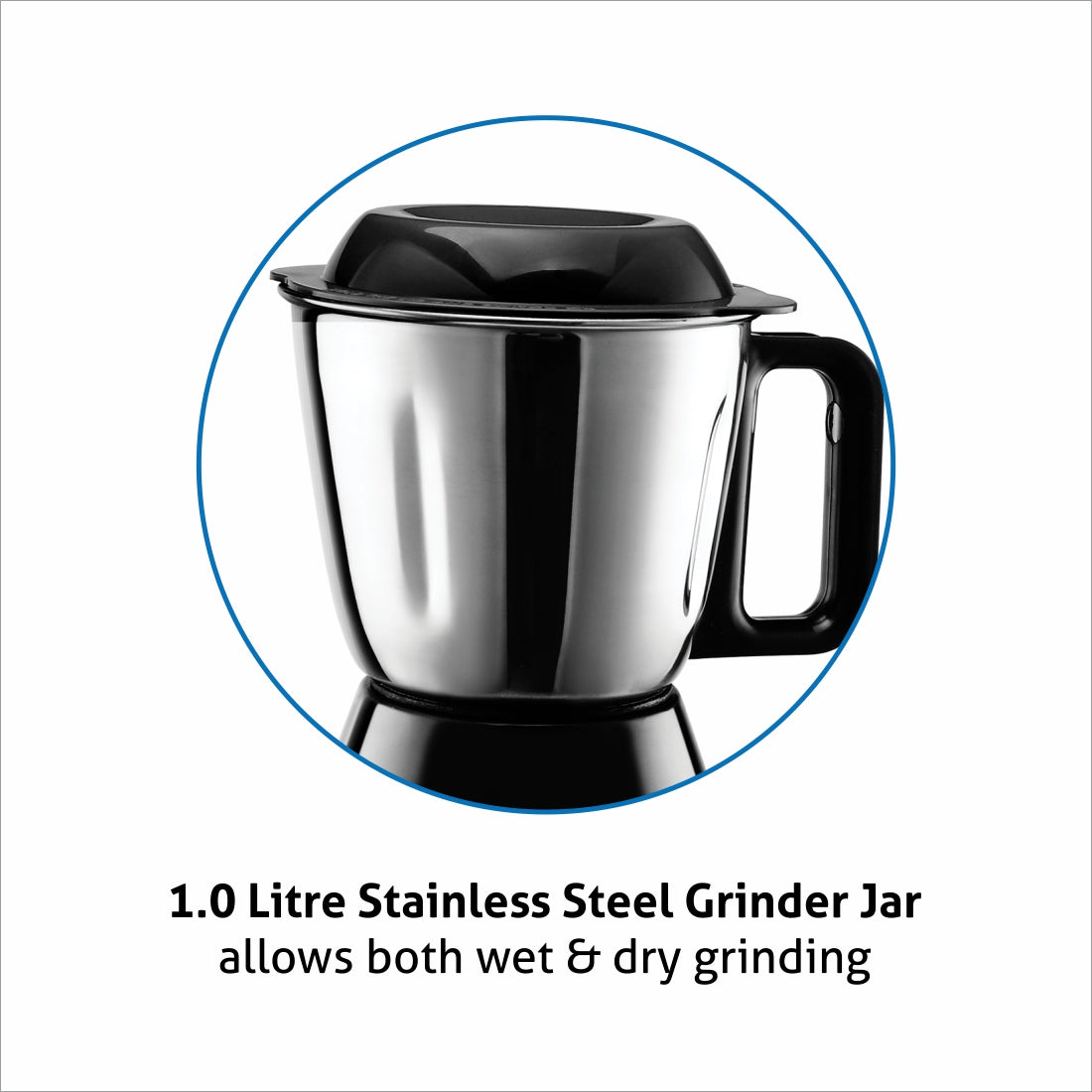The Glen 4030 Mixer Grinder is fast enough to do all precooking chores effectively. From grinding dry spices to soaked rice & dals for making batters and pastes, you can also prepare smoothies and shakes. The 3 different stainless steel jars including liquidizer, dry grinder and chutney minimizes your efforts and also save your time.B High power 750W motor allows grinding of toughest whole spices, coffee beans, rice, sugar, turmeric, wheat etc. and achieve the finest of results.B The motor hasB Locked Power of 2200WB and comes withB 5 yearsb warranty.B Also, the overload protector mechanism is an added advantage. The 3 speed settings with pulse function allows you to achieve best results.