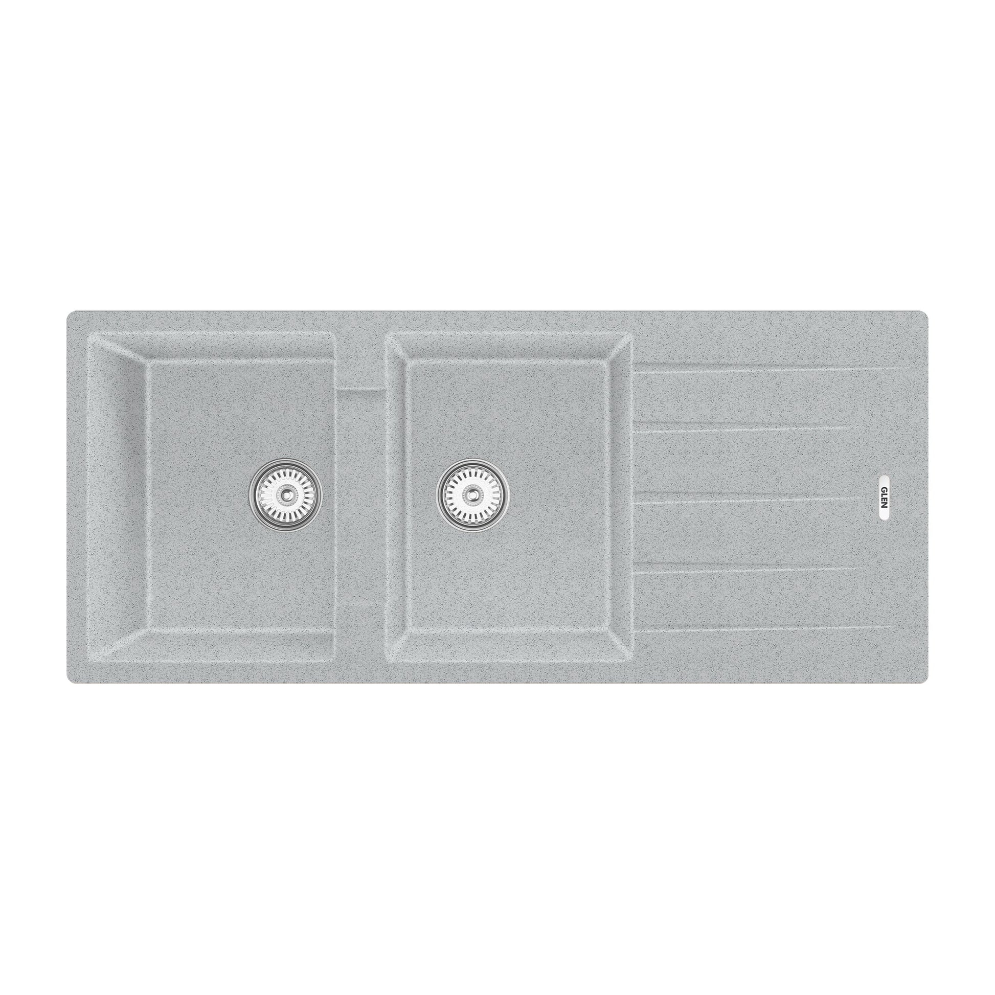 GLEN Quartz Kitchen Sink | Double Bowl with Side Drain 46x20x9 inches (KS-QZ46209DBSD) | 80% Quartz, Non-Porous, Anti-Bacterial & Heat Resistant