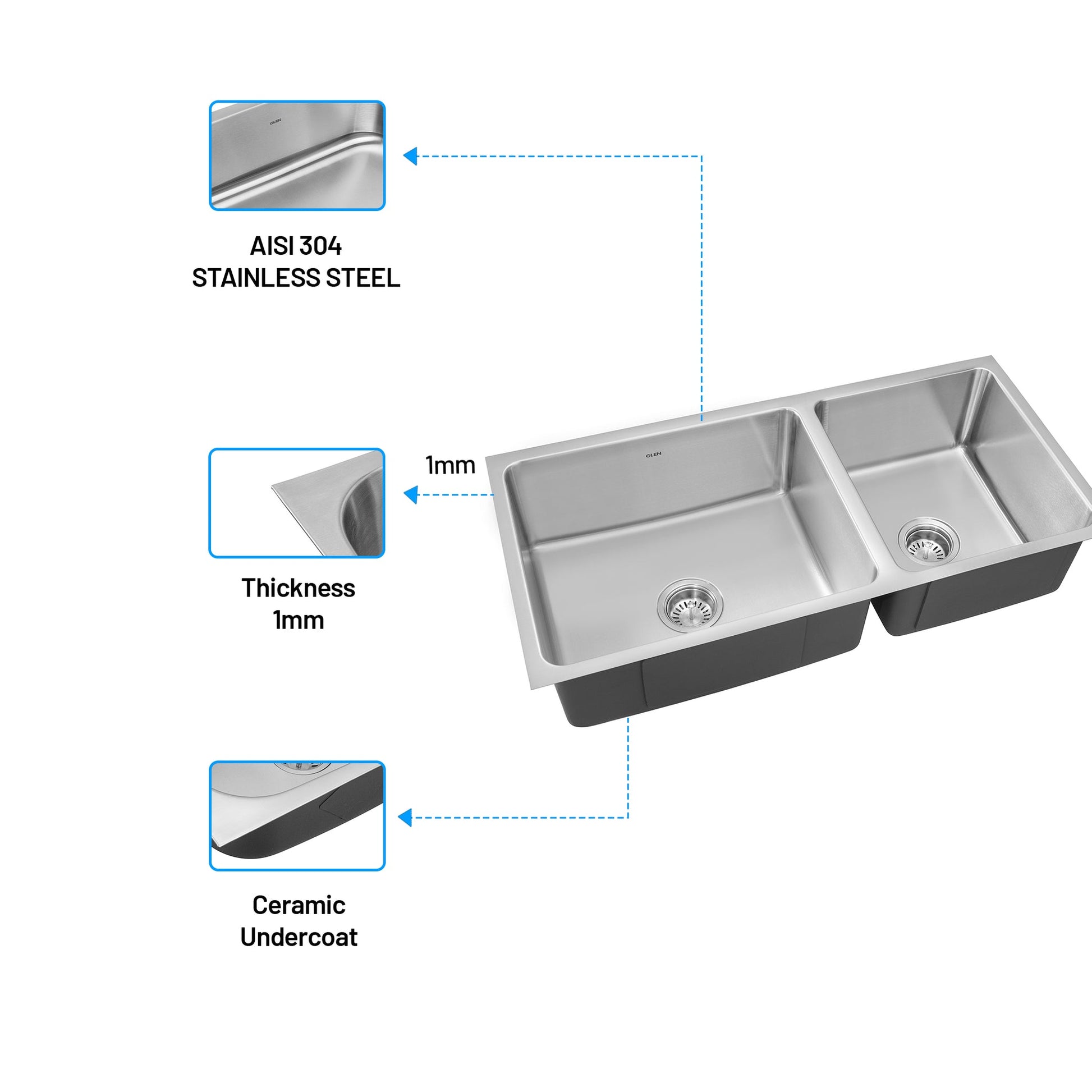 •Premium Stainless Steel: Crafted from AISI SS304 (18/8) stainless steel, this sink offers exceptional durability and resistance to rust and corrosion. The 1mm thickness ensures longevity and strength for everyday use.