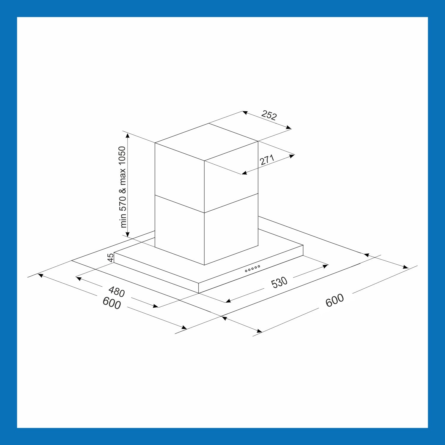 Island Kitchen Chimney Glass Push Button Italian Motor, Baffle filters 60cm 1250 m3/h -Silver (1022 IS)