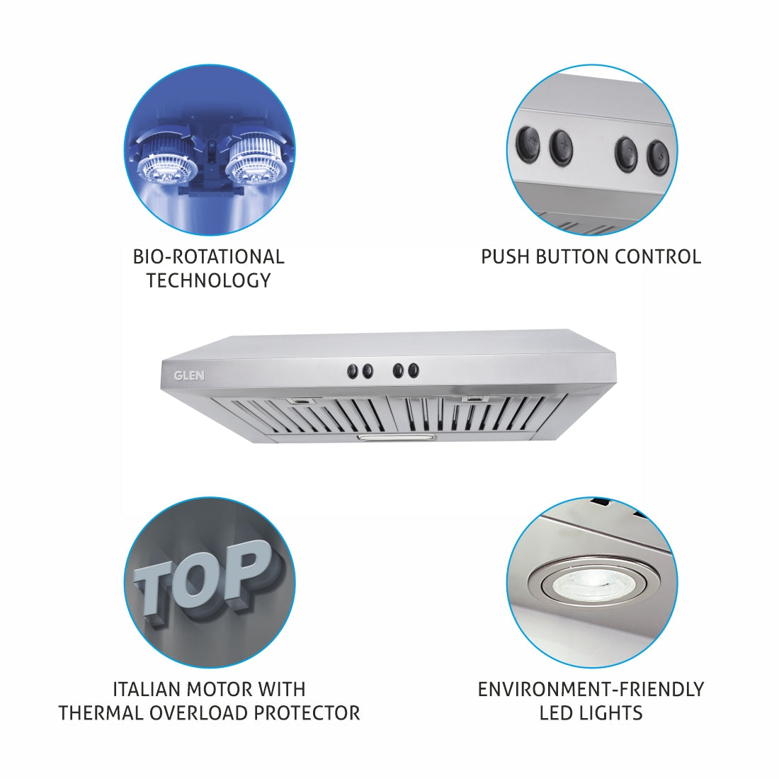 Straight Line Kitchen Chimney Push Button Baffle filters 60cm 1000 m3/h -Silver (6001 SS PB)