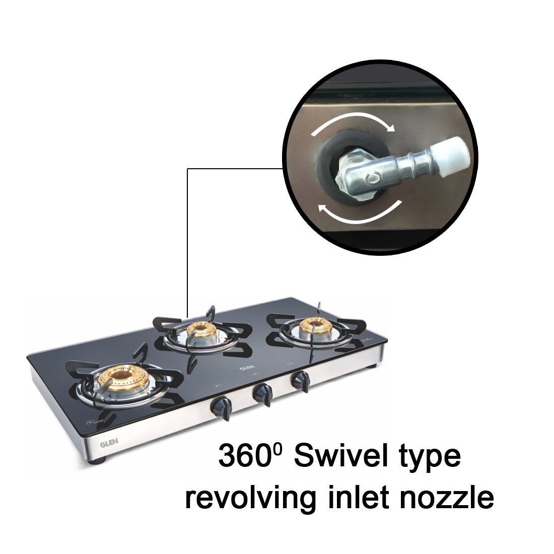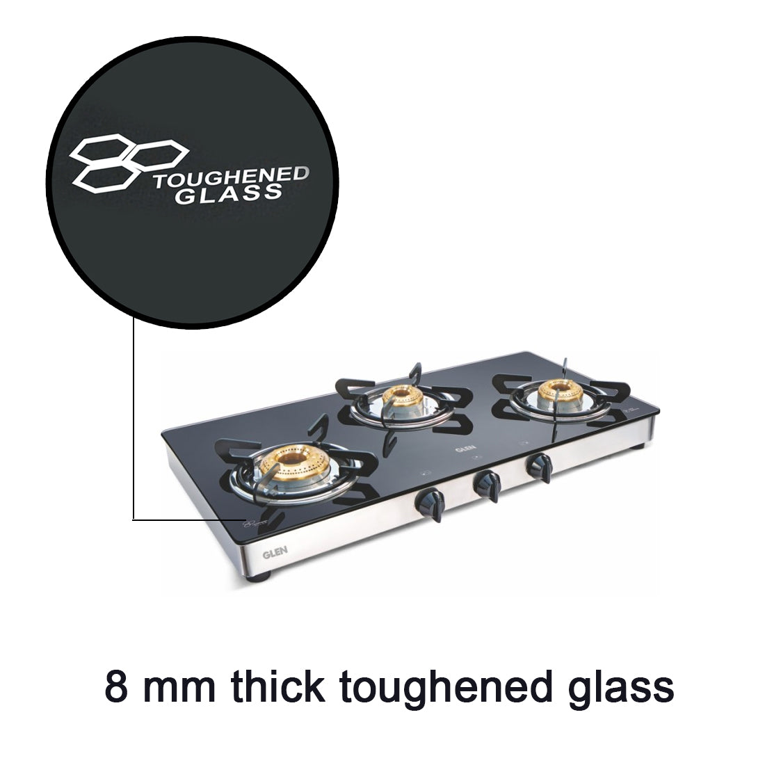 A manual operated gas stove equipped with 3 Different fuel efficientB brass burners: 1 High flame, 1 Big and 1 Small Burner for diverse cooking requirements