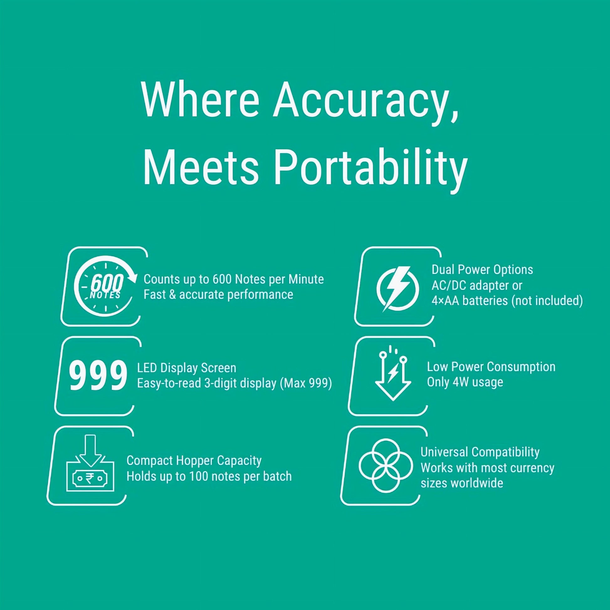 •Compatible with most global banknote sizes