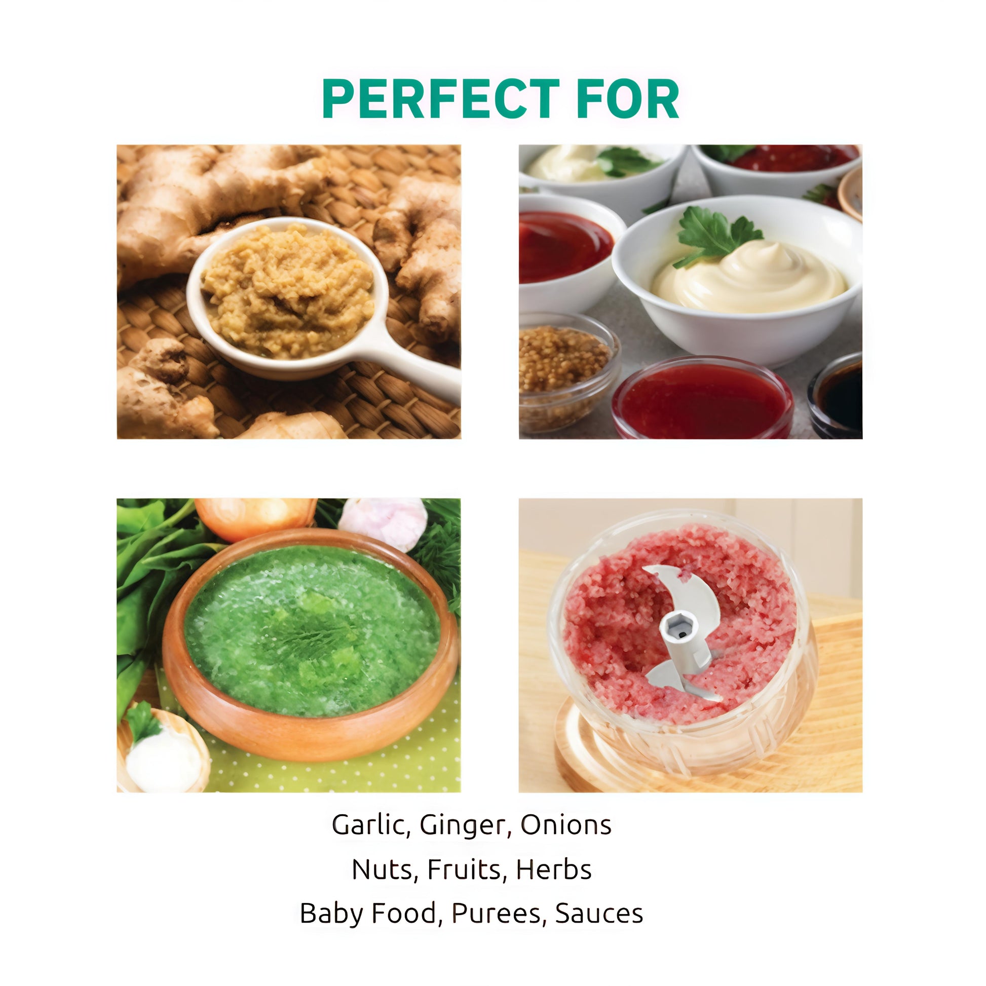 •Perfect for garlic, ginger, onion, nuts, fruits, sauces & baby food prep.