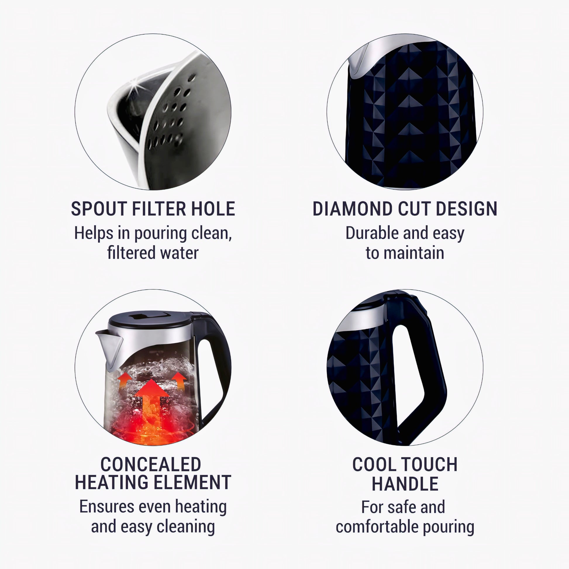 KAIROS Diamond Edge 2L Electric Kettle |Premium Stainless Steel Kettle| Quick Boil, Fast Heating, Durable & Stylish Design
