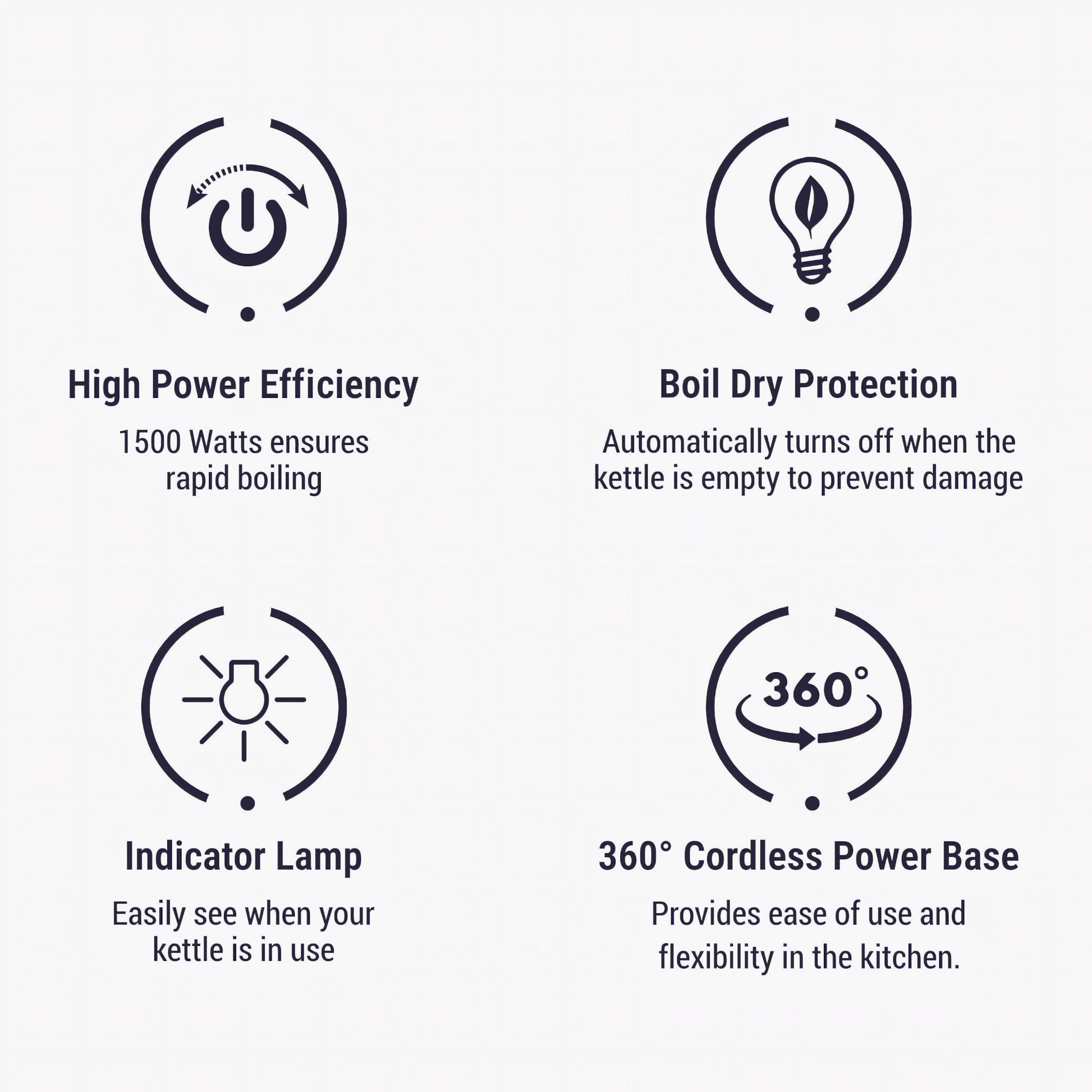 •Boil Dry Protection: Automatically turns off when the kettle is empty to prevent damage.