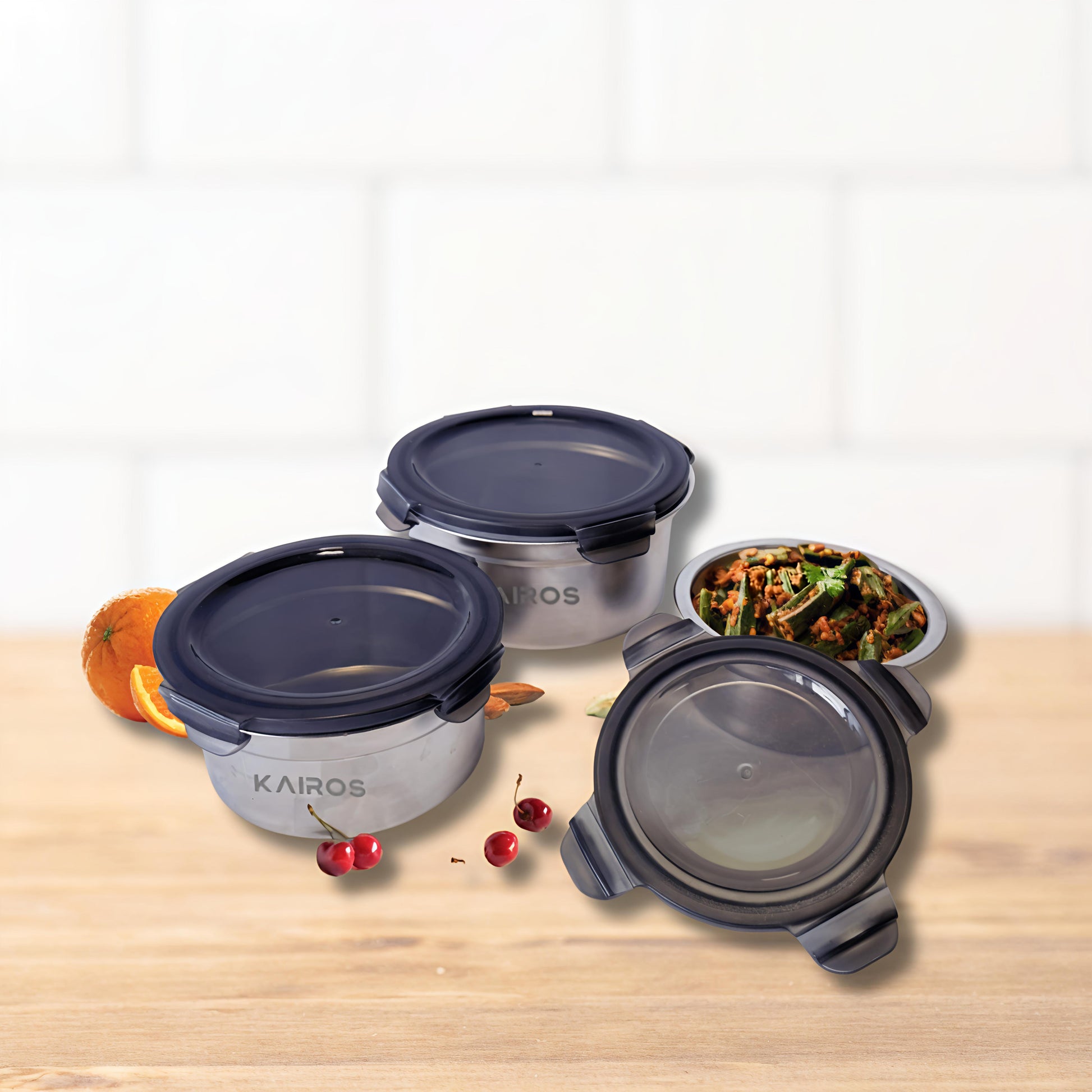 KAIROS Fresh Seal Trio-Stainless Steel Containers Set of 3 | Durable & rust-resistant | 3 Pcs. Container Set