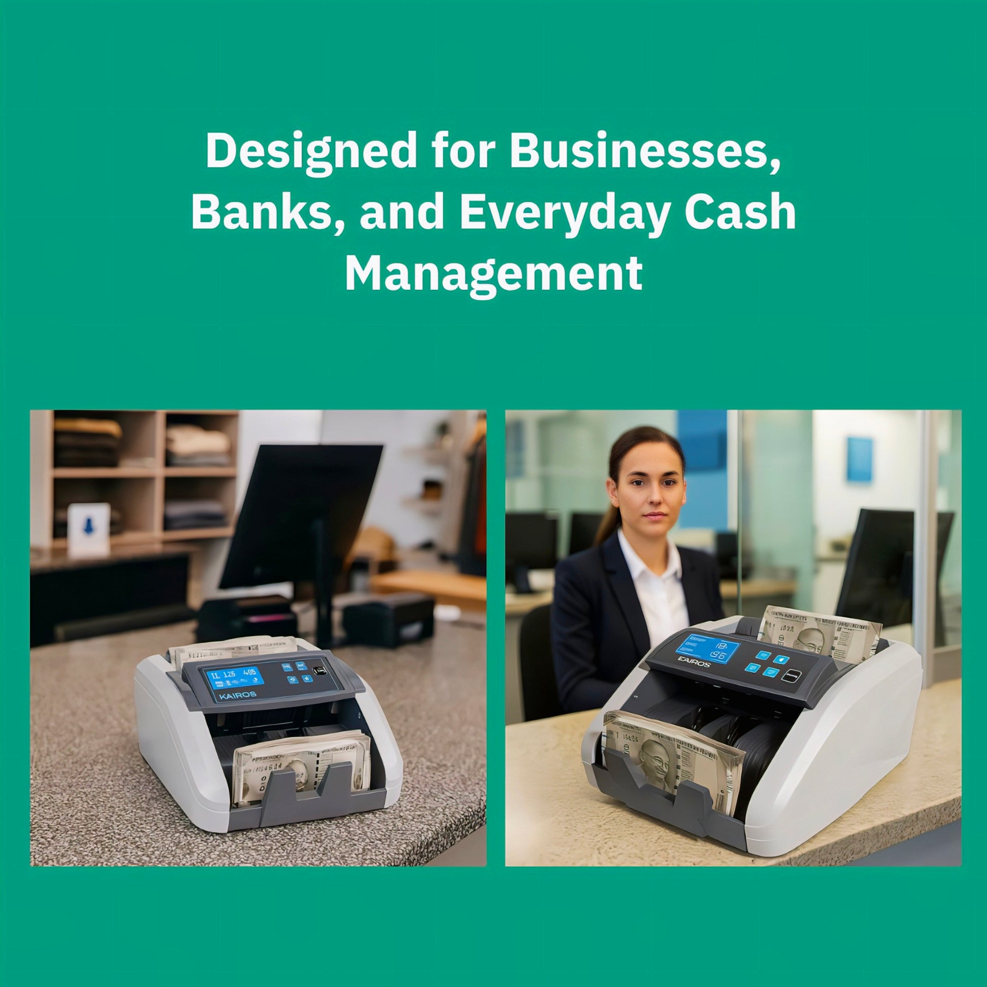 •Perfect for banks, retail stores, offices, and commercial setups, the Kairos Money Master ensures your cash is counted accurately, quickly, and securely