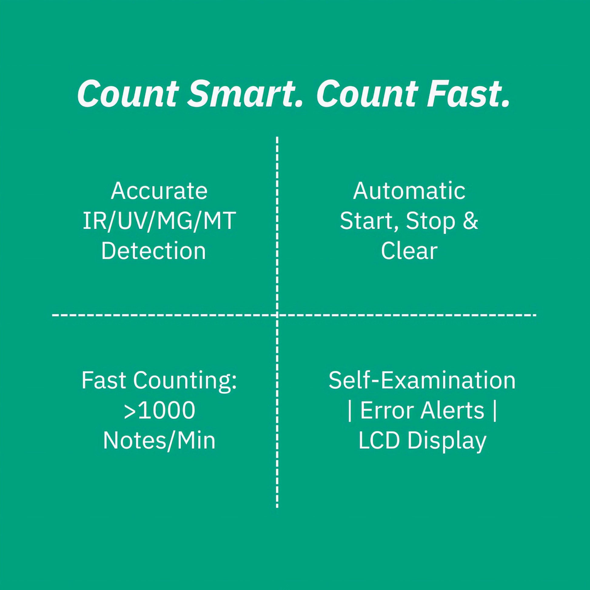 •High-Speed Counting: Processes over 1000 notes per minute for fast, efficient operations.