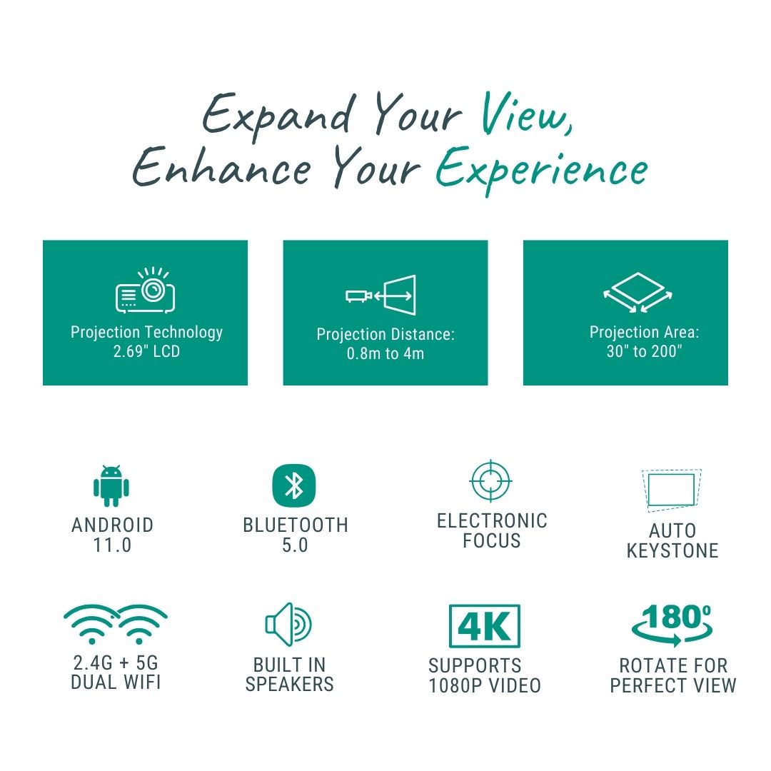 - Ultra-Clear Projection: Supports 4K and 1080P for sharp, detailed visuals.