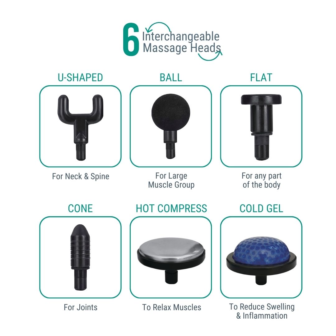- 6 Interchangeable Heads: Ball, U-shaped, flat, cone, hot, and cold heads for customized relief.