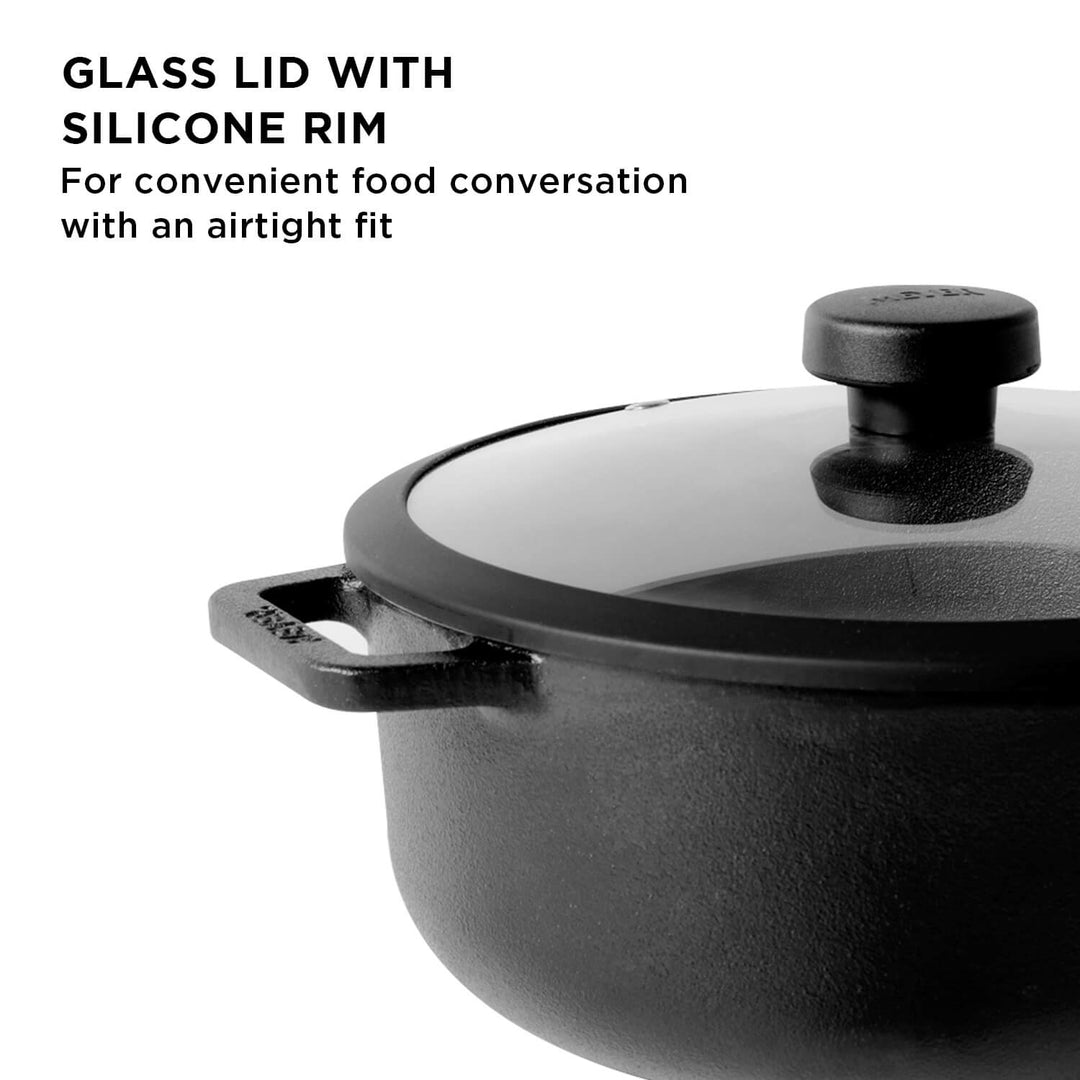 Meyer Pre-Seasoned Cast Iron 3 Piece Cookware Set ( 24cm Frypan + 24cm Dutch Oven + Interchangeable Lid)