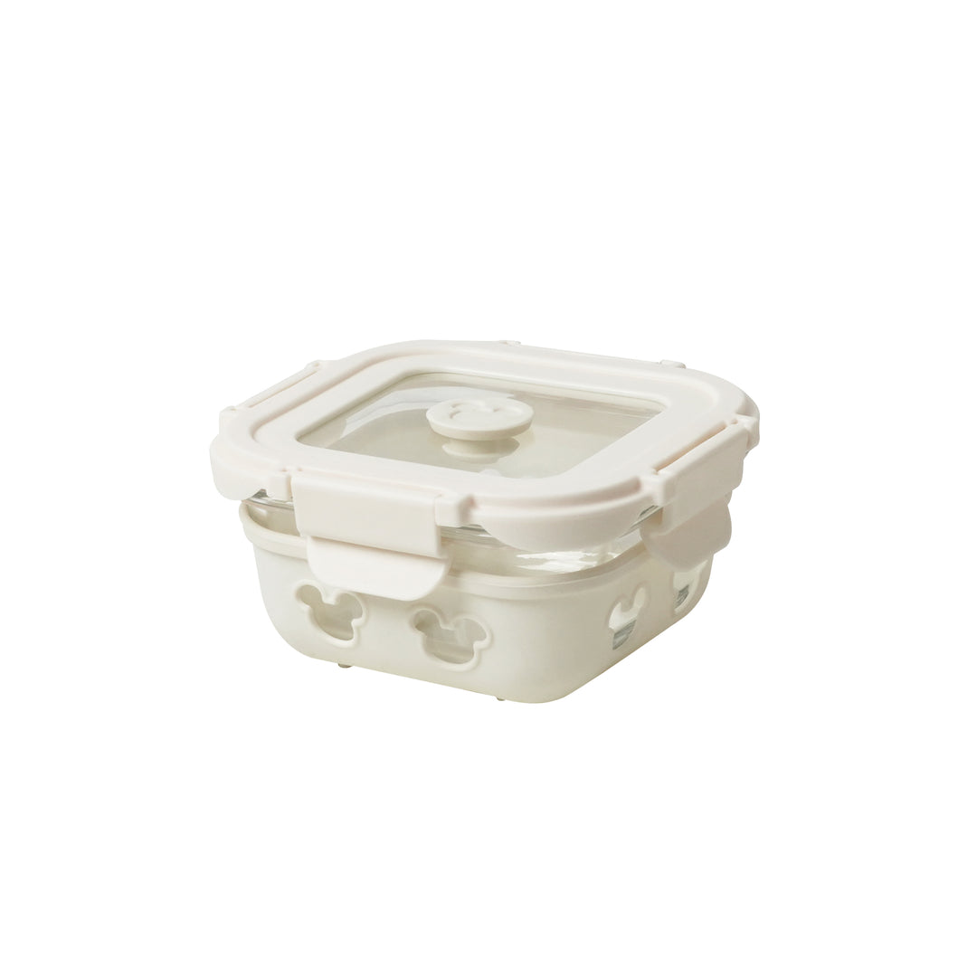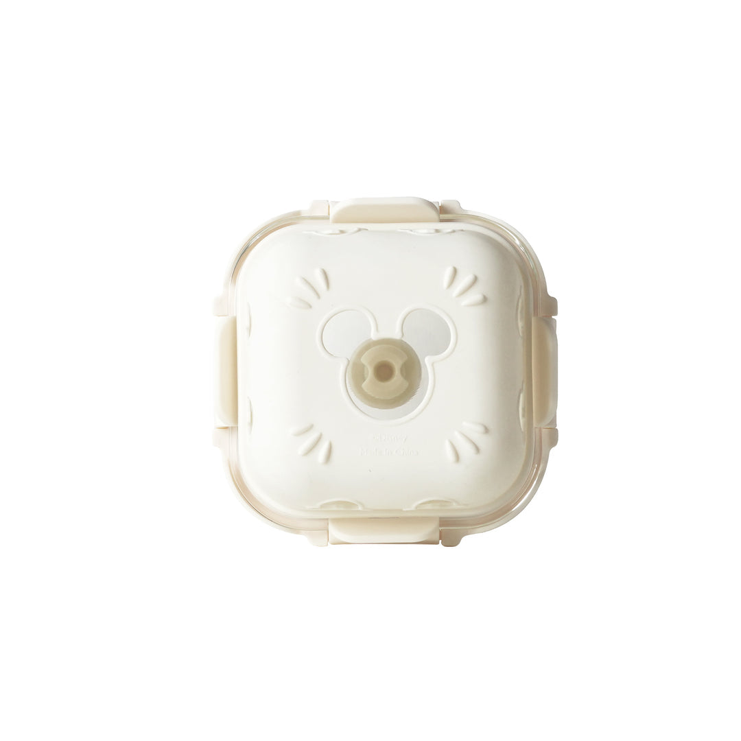 The container features a silicone air vent lid with a Mickey head pattern, allowing for easy ventilation and steam release when reheating food. |