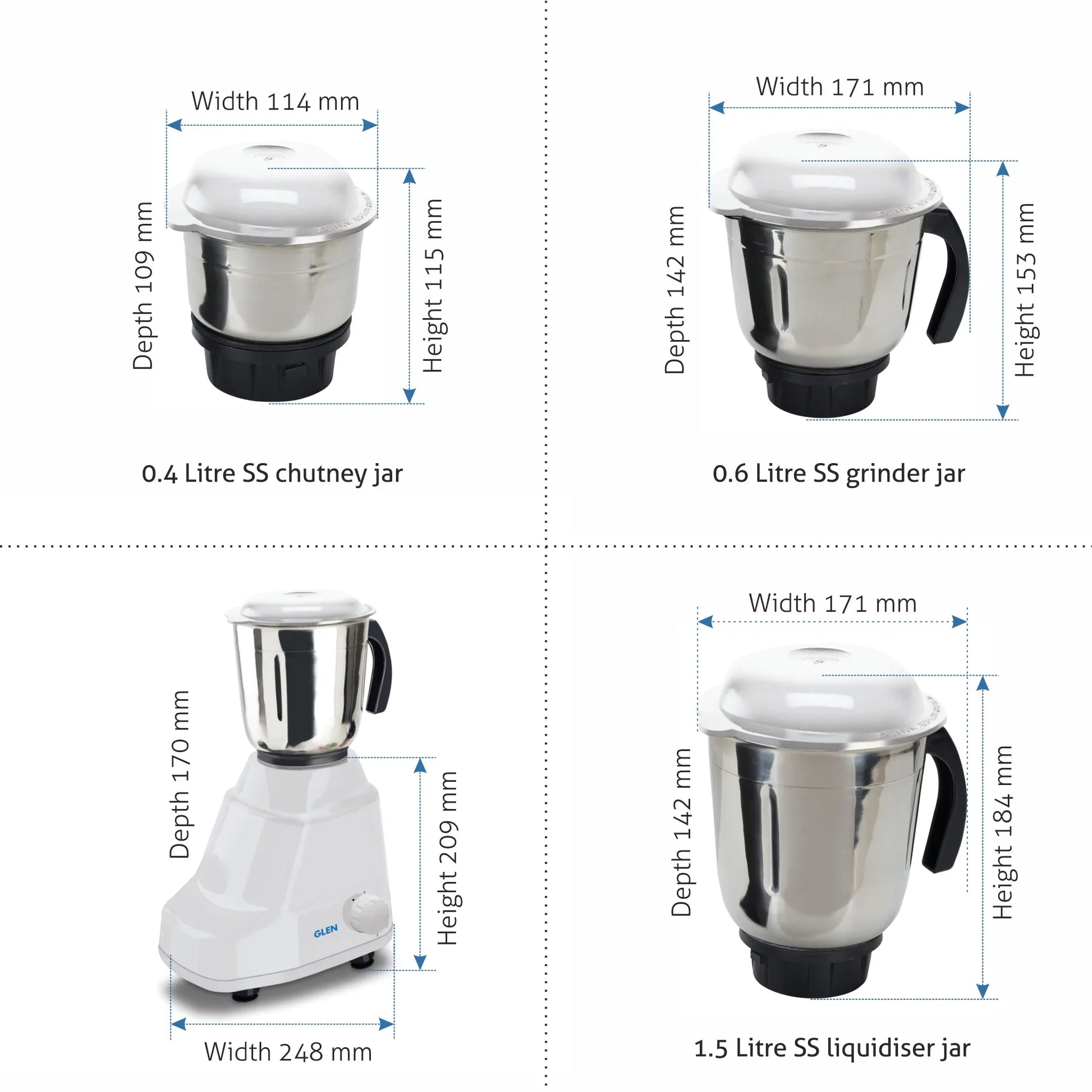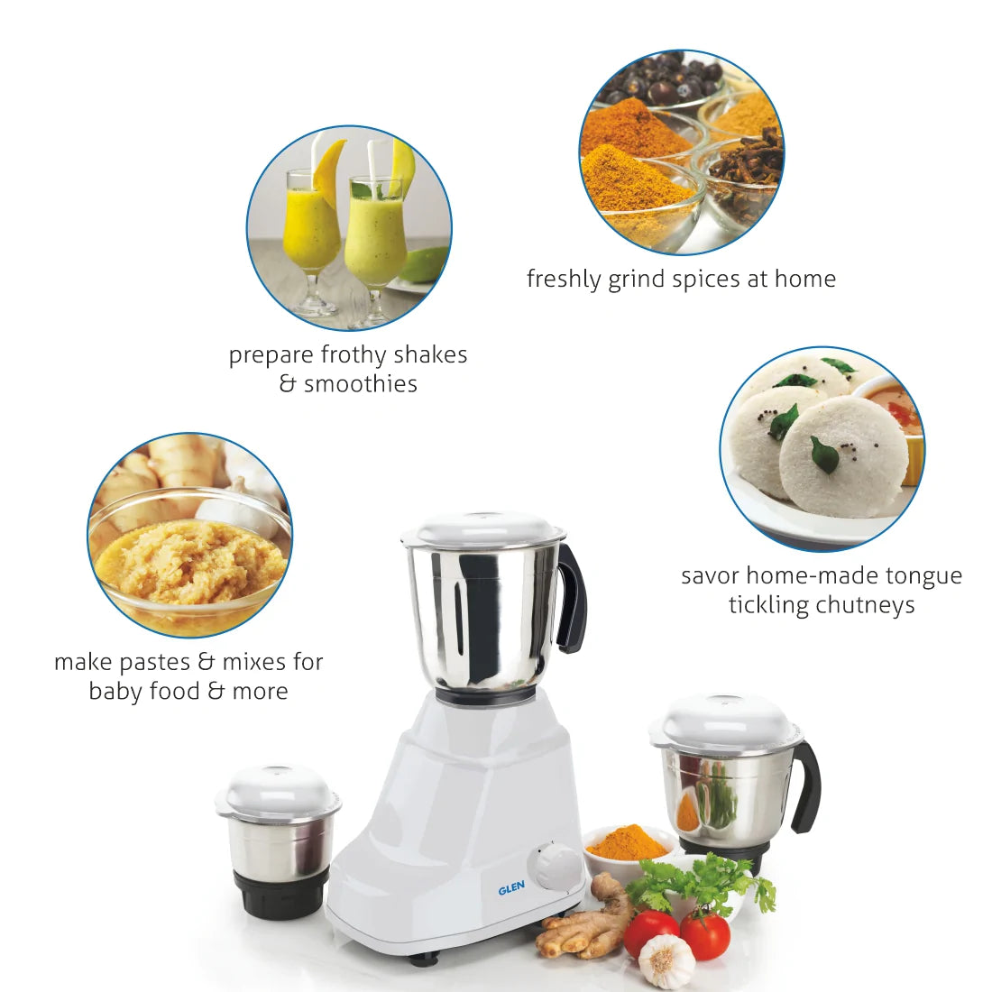 Mixer Grinder 500W With 3 Stainless Steel Blender, Grinder, Chutney Jars Stainless Steel Blades - White, Black, Red (4020)