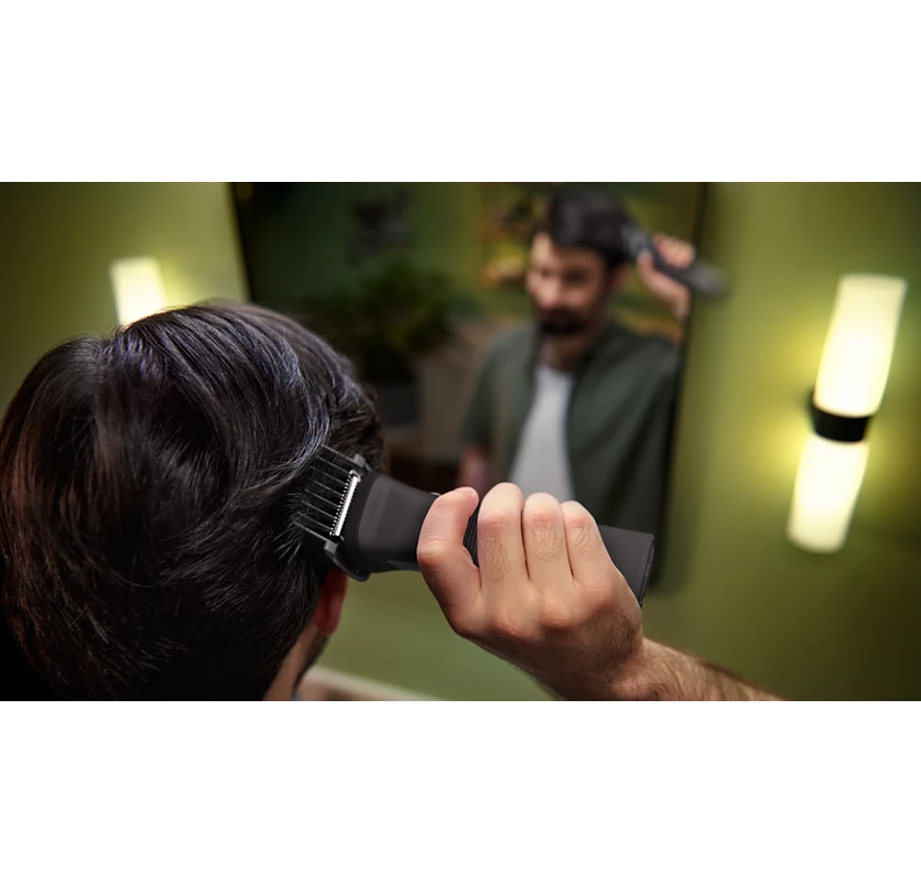 With the trimmer's multi-comb system you can choose length settings between 0.5 - 16 mm to create your hairstyle at home.
