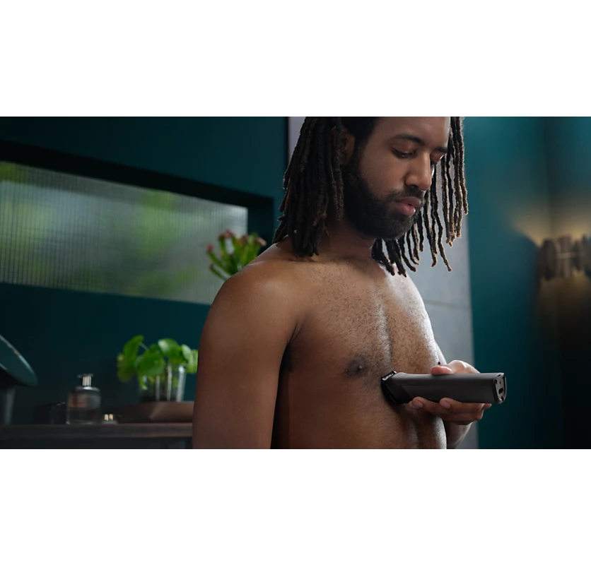 Shave comfortably below the neck with our body shaver attachment. A unique skin-protection system guards sensitive areas while you shave as close as 0.5 mm. You can also trim body hair with the two click-on combs.