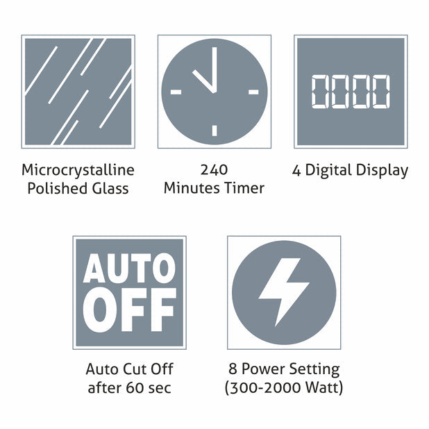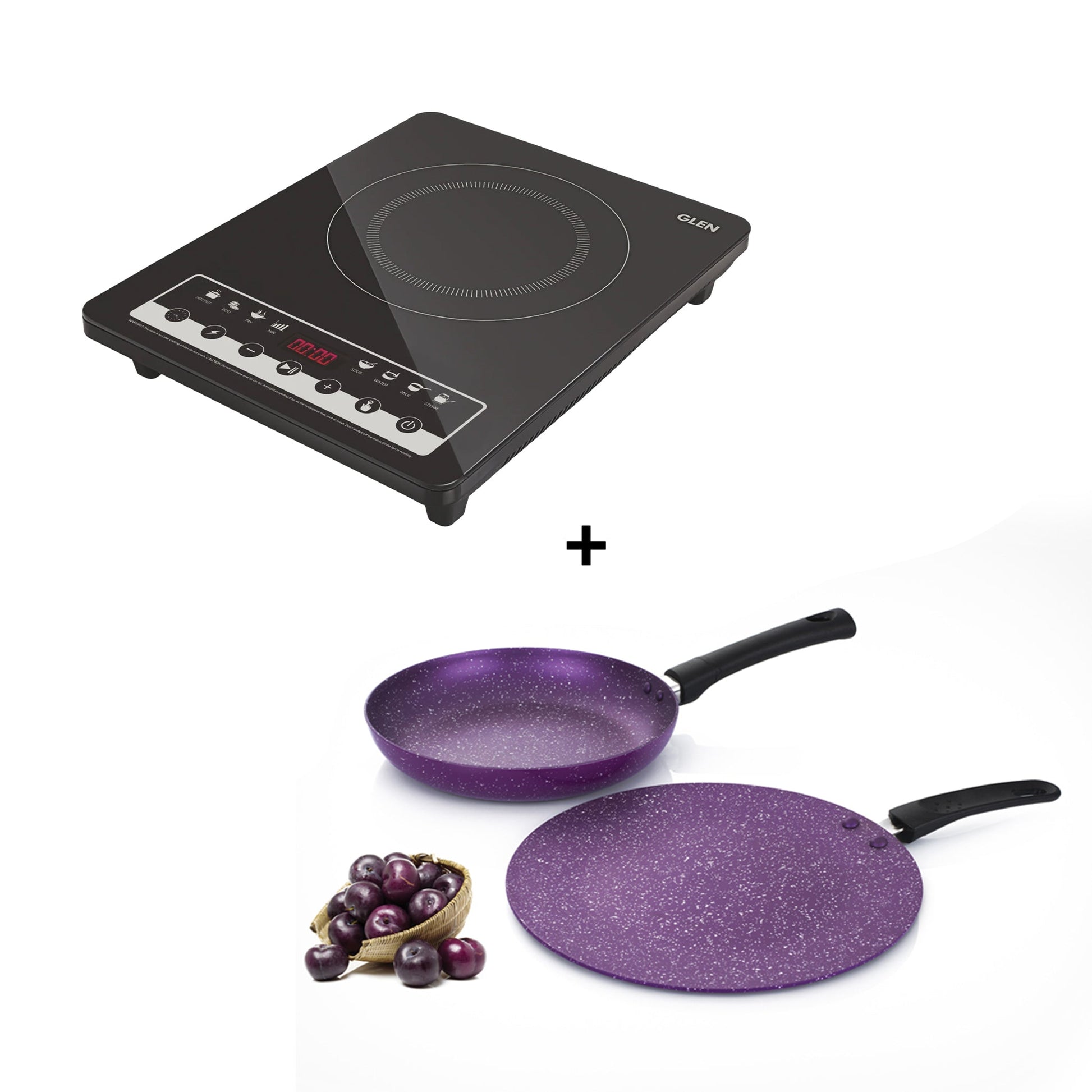 A combo of powerful Induction Cooker with Touch Controls, high quality ceramic glass plate and 2000W powerB with Alda 2 Pcs. Plum Non Stick Cookware set.B The set includes b The set includes b 24cm Fry pan and 25cm Crepe pan.