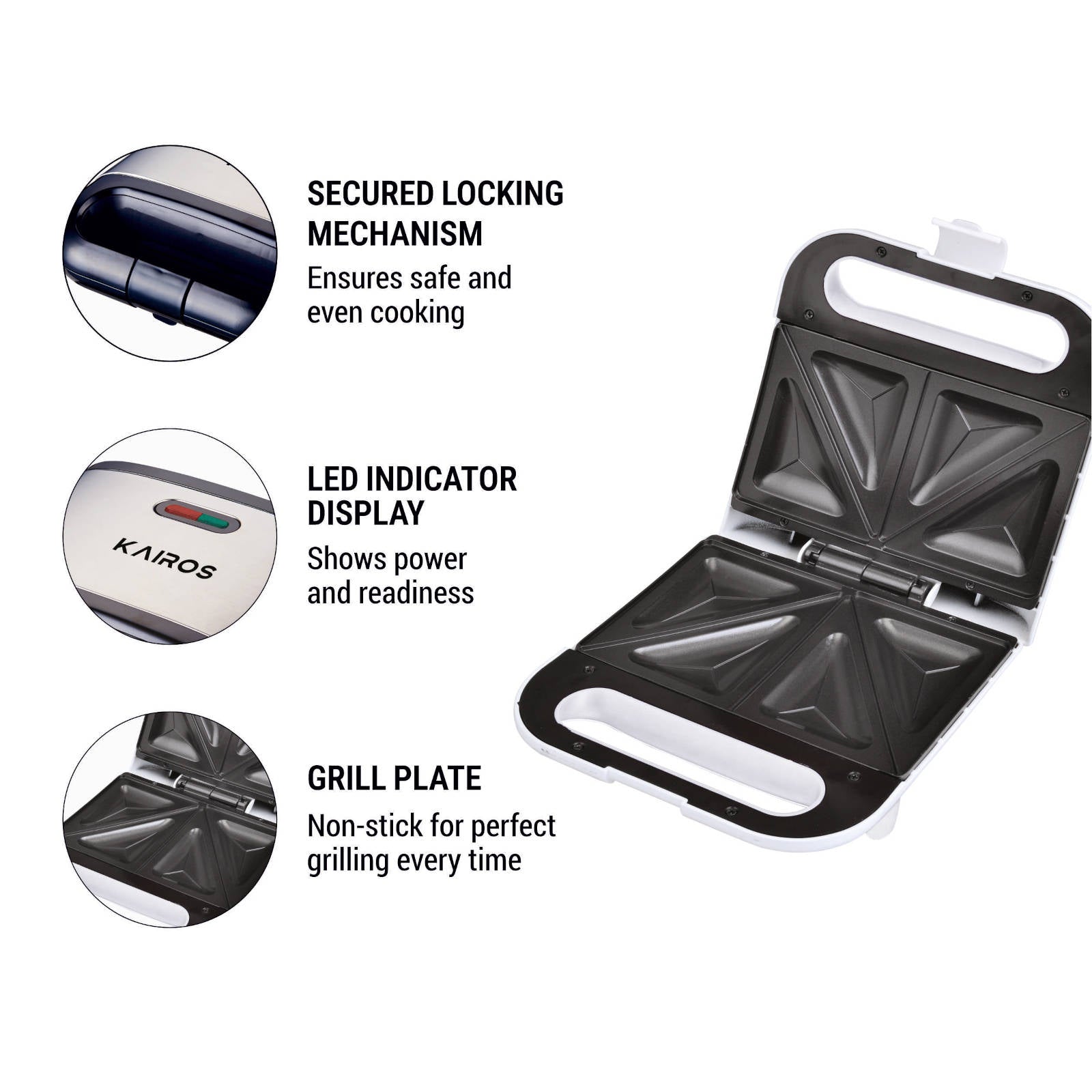 KAIROS Toasty Delight 700W Electric Sandwich Maker | Easy & Fast Toasting, Compact Kitchen Appliance | Non-Stick Plates, Quick Toasting, Perfect for Home & Office